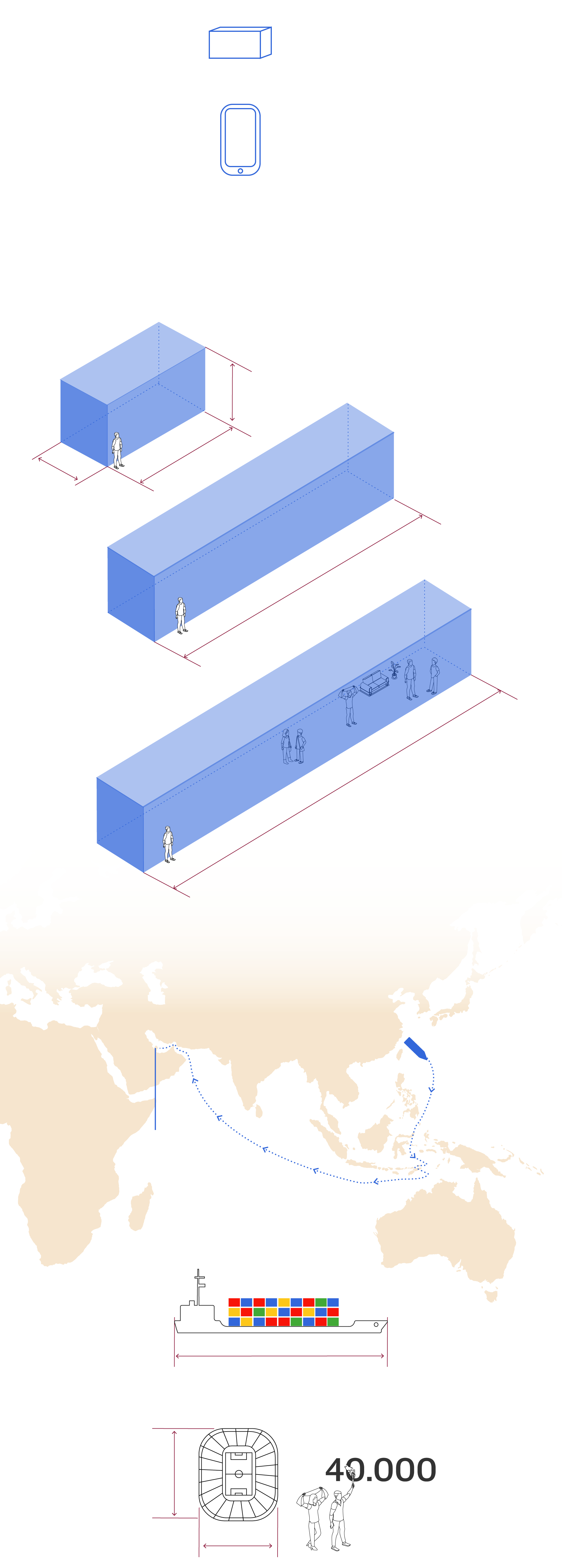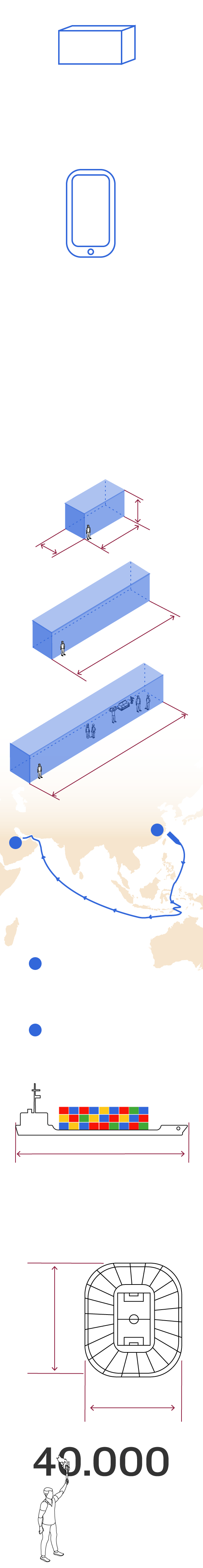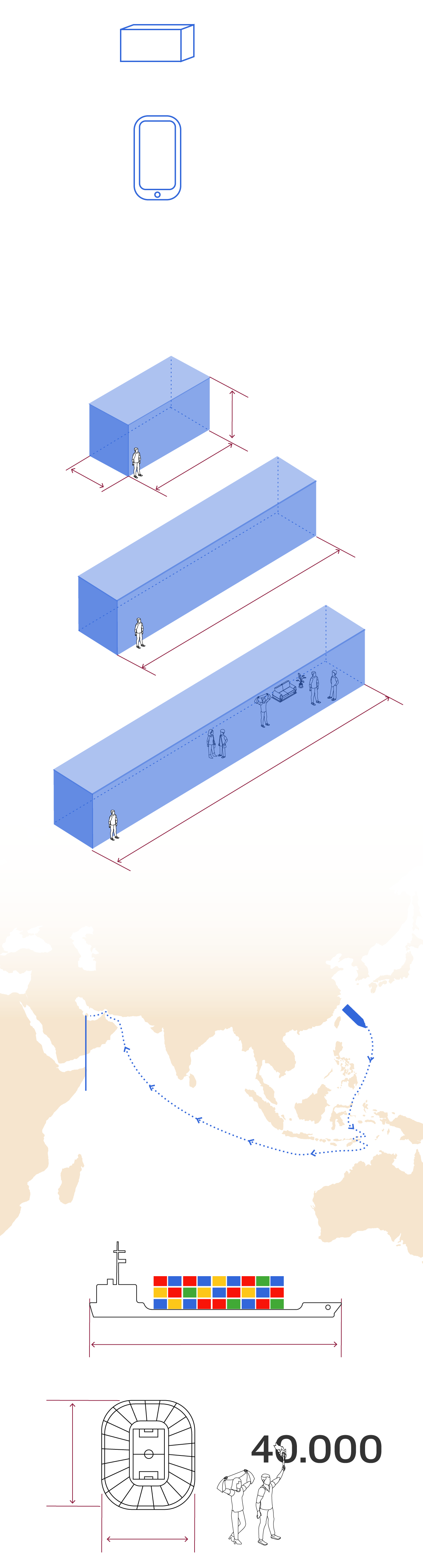 Los contenedores tienen unas medidas especiales, no son aquellos que estamos acostumbrados a ver en barcos. Se ha construído con tres tamaños.
