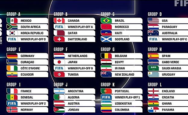 Una vez finalizado el sorteo del Mundial de Fútbol 2026, así quedan los grupos.