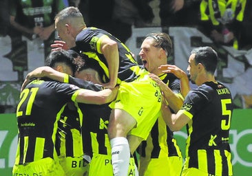 Además, el cuadro baracaldés supo sacar rédito de su buen momento. Nada más cumplirse la hora de encuentro, un Maroan Sannadi que fue un quebradero de cabeza para la zaga contraria, por su incesante lucha y corpulencia, recibió un balón en el costado izquierdo y colgó un centro medido al segundo palo que cabeceó al fondo de las mallas Adrián Revilla. El sector dónde se ubicaba la hinchada gualdinegra estalló de éxtasis y el resto de Las Llanas se silenció. Aunque rápidamente volvieron a animar a los suyos en busca de que pudieran remontar.