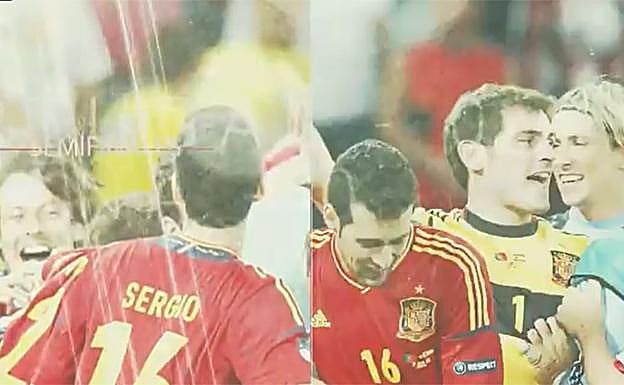 La respuesta se puede encontrar en un vídeo publicado horas antes por la Federación, en la que se conmemoraba la cita de Kiev. En el documento visual de apenas 45 segundos se hace un repaso de aquel torneo con imágenes de los jugadores más destacados: Cesc Fabregas, Fernando Torres, Jesús Navas, Sergio Ramos, Xabi Alonso... ¿E Iker Casillas? El portero de aquella selección apenas aparece durante un segundo en el vídeo y en un segundo plano.