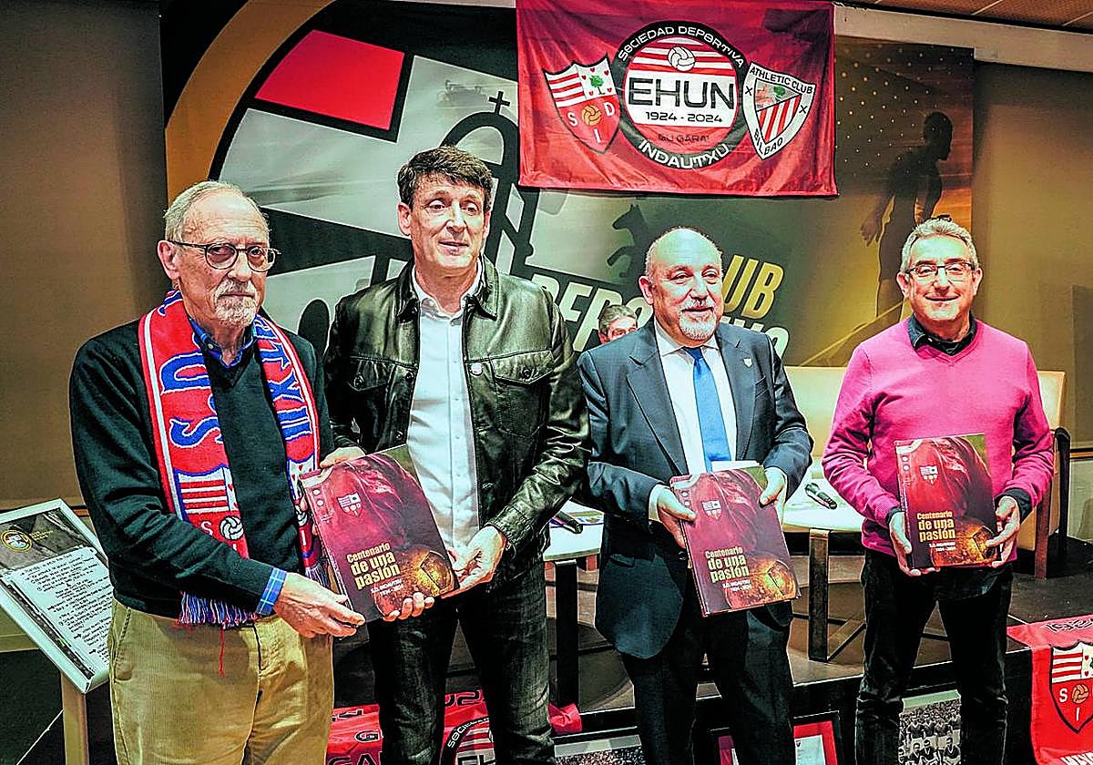 Cien años de historia dan mucho juego y si se trata, como en este caso, del «segundo club más grande de Bilbao» por detrás del ... Athletic, mucho más todavía. La Sociedad Deportiva Indautxu puso ayer colofón a los actos conmemorativos de tan señalada efeméride con la presentación en sociedad de su nuevo himno y del libro que recoge algunas de las etapas más importantes de la andadura de la entidad (1924-2024), con sus luces y sombras. El periodista y exjugador del Athletic Andoni Ayarza ha sido el encargado de recoger esas vivencias en algo más de 250 páginas que llevan por título 'Centenario de una pasión'.