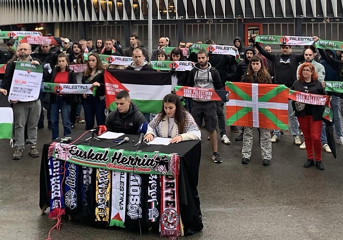 Algunos de los principales grupos de animación de los clubes deportivos más importantes de Euskadi han convocado una marcha en la previa del amistoso entre las selecciones de Euskadi y Palestina. La convocatoria cita a los manifestantes dos horas antes del comienzo del partido, programado para las 20.30 horas el próximo sábado 15 de noviembre, en El Arenal para encaminarse hacia San Mamés.