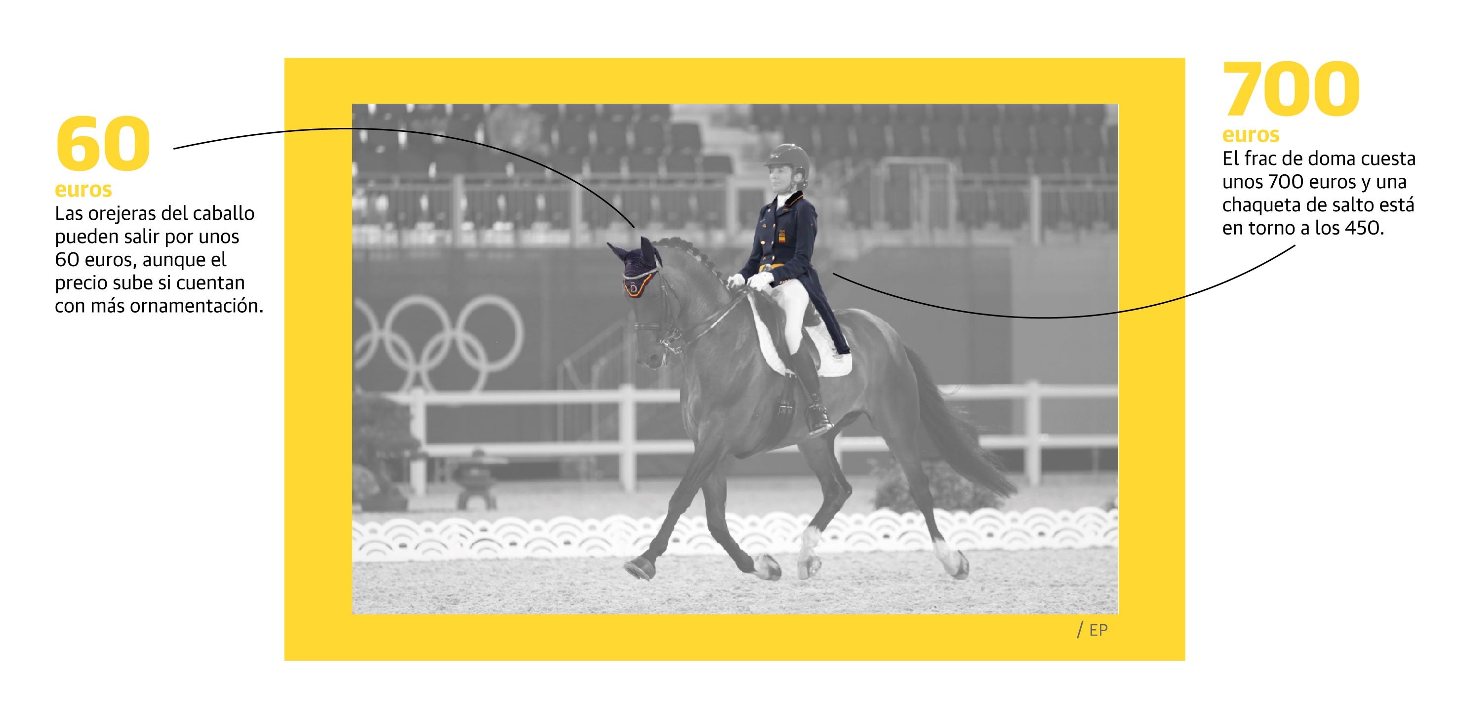 También tiene ruedas (y muchos menos elementos) el skate, cuyo precio ronda los 100 euros. Eso sí, sobre monturas, la horquilla de precio es mucho más alta al acudir a un deporte como la hípica. Solo si se tiene en cuenta el precio del deportista de cuatro patas, ganan por goleada y con varios ceros a la derecha. Además comen y necesitan cuidados veterinarios. El COI cuenta en sus datos con siete caballos españoles, de los que ofrece información como si fueran atletas. Y también necesitan material para competir: una silla de alto nivel ronda los 3.500 o 4.500 euros (teniendo en cuenta que varía según la modalidad), la cabezada son 600 euros, las riendas, unos 150 y otro tanto el hierro, la pieza que va dentro de la boca del caballo. Si es para doma, le ponen unas vendas en las patas a unos 200 euros y si lleva protectores, como en salto, son unos 500. Las orejeras pueden salir por 60. Y la equipación del jinete también suma: un frac de doma puede costar 700 euros, los pantalones, 220, las botas, 700, una chaqueta de salto se va a 450 y el casco, de 500 a 1.000.