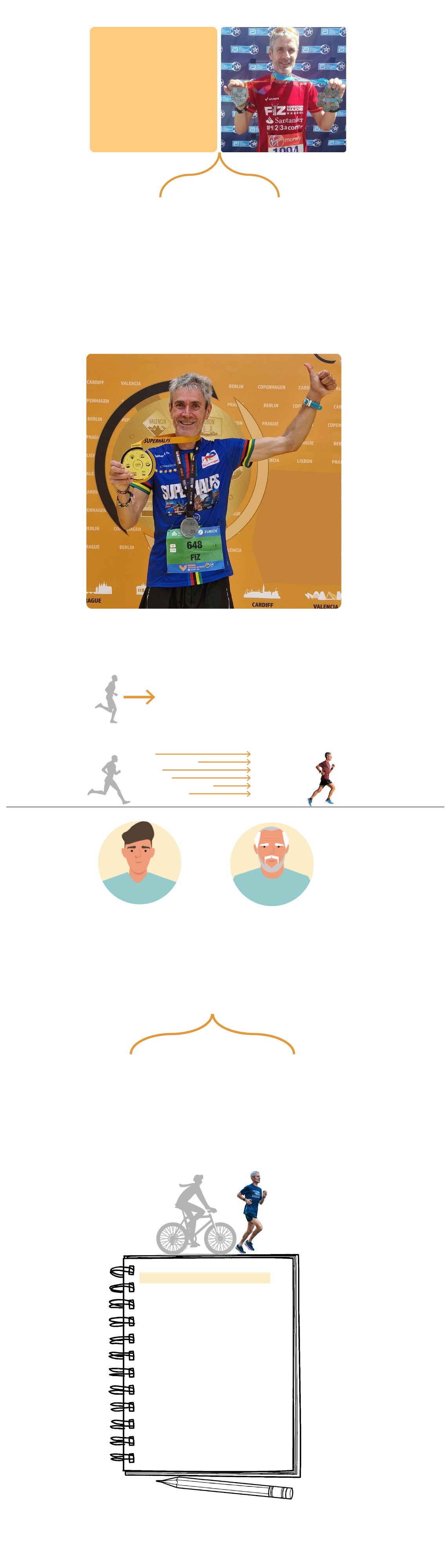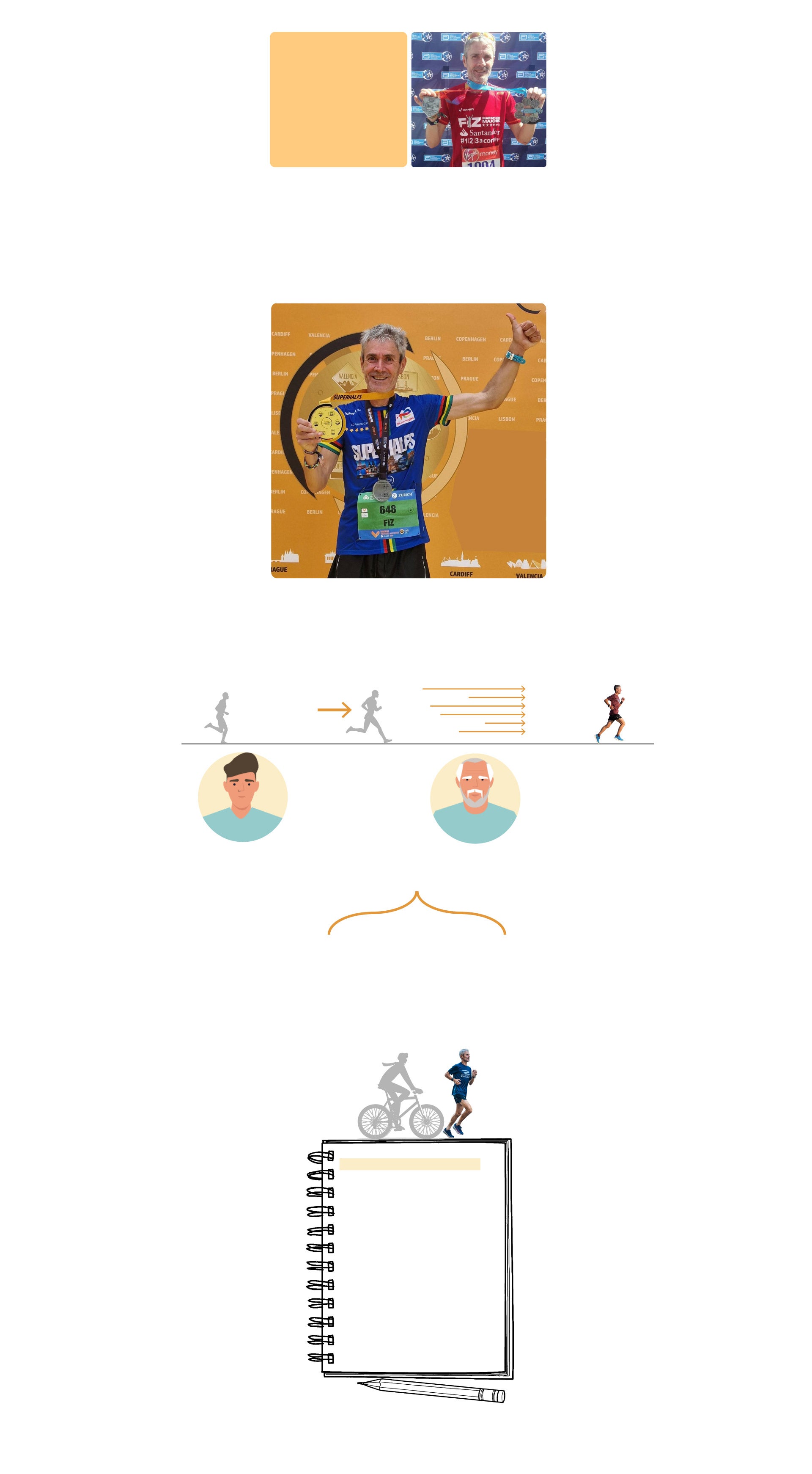 El tiempo medio de corredores mayores de 60 años, como Fiz es de 2 horas y 02 minutos en media maratón y de 4 horas y 51 minutos en la distancia reina. Martín ronda 1 hora y 14 minutos en media maratón