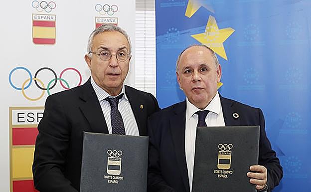 El Comité Olímpico Español (COE) y la Federación Española de Municipios y Provincias (FEMP) colaborarán para impulsar en el ámbito local los valores del olimpismo y de la práctica del deporte, hábitos saludables y de convivencia y no discriminación en el ámbito municipal. La firma del «primer convenio que se firma» desde que el pasado 3 de abril se conmemoró el 40 aniversario de la democracia local se llevó a cabo este martes en la sede del COE en Madrid, ha contado con la presencia del presidente de este organismo, Alejandro Blanco, y del presidente de la asociación de municipios FEMP, Carlos Daniel Casares.