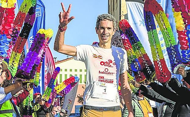 Lo volvió a hacer. Julen Martínez de Estibariz voló en la Hiru Haundiak para sumar su tercera victoria en cadena, emulando su travesía por las tres cimas que coronó para llegar a Murgia. Cruzó la línea de meta y levantó tres dedos, esa especie de 'medalla' de la que sólo él puede presumir. «Se nos da bien», confesó humilde el dueño de ese dorsal número '1' que nadie consigue despegar de su pecho.