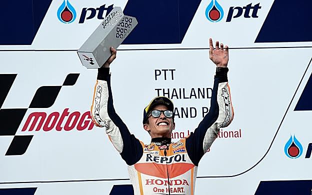 Otra vez fue Dovizioso el que más le exigió. En 2017 le había ganado dos veces en la última curva, en Austria y Japón, y en 2018 sobre la línea de meta en Qatar. En Tailandia, por fin, Márquez batió al italiano con un adelantamiento en el último giro en el circuito Chang de Buriram.