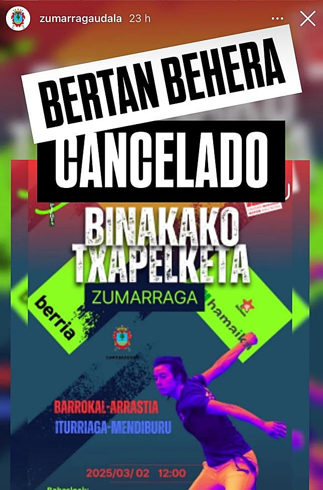 El Ayuntamiento de Zumarraga ha anunciado que se pospone el partido del Campeonato de Parejas femenino donde se iba a honrar su memoria