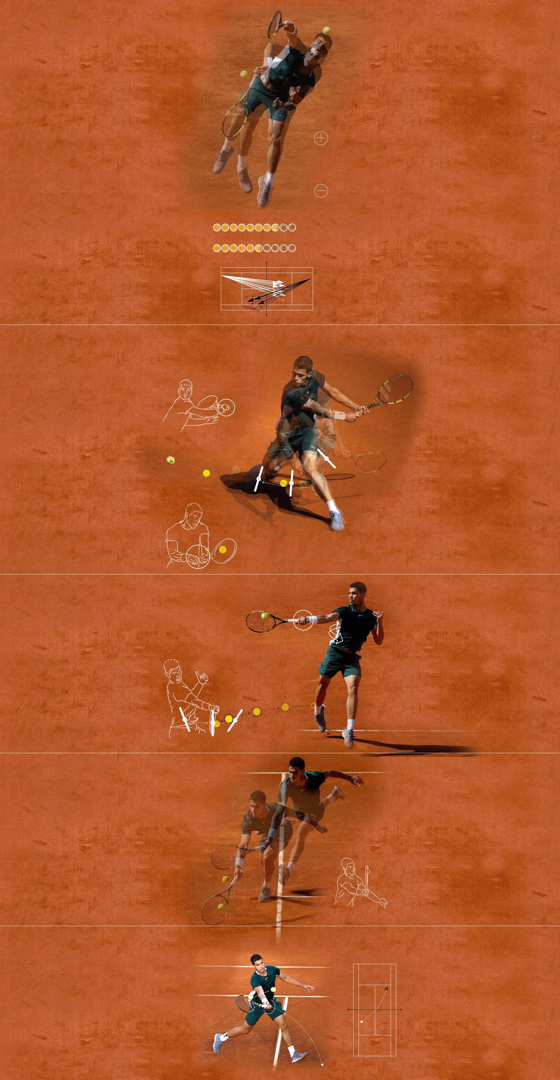 No solo tiene un dominio brutal en todos sus golpes. Igor del Busto, presidente de la Federación Vasca de Tenis, destaca que Alcaraz «no se achanta en los puntos importantes. Puede fallar, pero él juega igual, lo que le permite hacer muchos ganadores». Exnúmero 90 de España y entrenador nacional en la máxima titulación, asegura que «tiene una gran fortaleza mental, no se viene abajo, sabe rearmarse y volver a meterse en el partido». No en vano, Carlitos es el tercero en la clasificación 'Bajo presión' de la ATP, que se calcula sumando el porcentaje de break points convertidos y salvados, el porcentaje de tie-breaks ganados y el porcentaje de sets definitivos ganados.