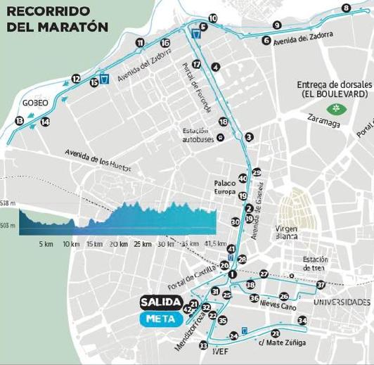 El cambio en el circuito es una de las grandes novedades de esta edición, patrocinada de nuevo por EL CORREO, con salida a las 8.30 horas y meta ubicada en el Paseo de Cervantes. La primera vuelta del maratón serán 21 kilómetros a los que se sumarán otras dos de 10,5 kilómetros por otra zona. Habrá hasta seis pasos por la Avenida Gasteiz y el objetivo es que «el público esté cerca de los corredores», según apuntó Aitor Morel, director de la prueba, en su presentación.