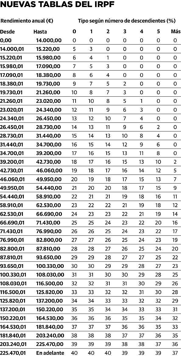 Aunque no solo se deflactan las tablas de retenciones del IRPF. Lo mismo y en igual 2% se ha hecho con la tarifa aplicable a la base liquidable general. E igualmente se incrementan en idéntico porcentaje la reducción por tributación conjunta, la minoración de cuota y las deducciones personales por descendientes, ascendientes, discapacidad o dependencia y deducción por edad.