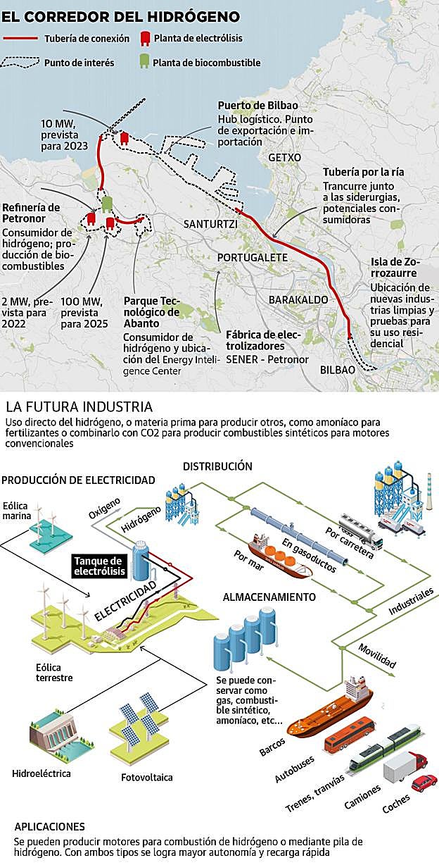 «Es una de las iniciativas más ilusionantes de cuantas están ligadas a los proyectos europeos», aseguró ayer Pedro Sánchez en la presentación formal del ... PERTE de energías renovables, que aprobó el martes el Consejo de Ministros y que supone el pistoletazo de salida a muchas iniciativas que van a ser claves para la industria vasca: el desarrollo y explotación de la tecnología del hidrógeno y, también, del almacenamiento de electricidad. El plan ya era esperado desde hace muchos meses por el denominado Corredor Vasco del Hidrógeno, una asociación formada por unas 120 empresas y que está liderado por Petronor. También por otras grandes compañías como Iberdrola y firmas industriales vascas que trabajan en el campo del almacenamiento, como es el caso de Ingeteam. Y, asimismo, en el sector eólico hay interés para empresas con sede en Euskadi, como Siemens Gamesa.