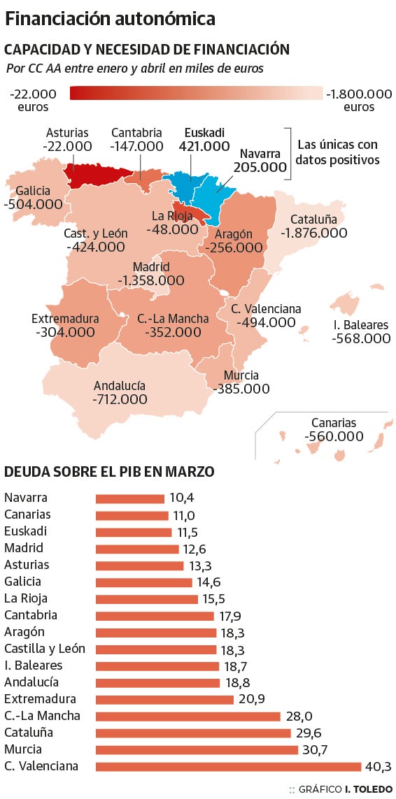 Euskadi es la comunidad autónoma que más capacidad de financiación genera