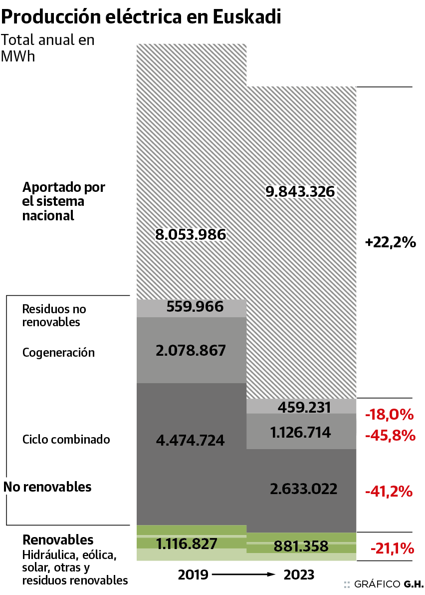 La crisis energética desatada en 2022 por la guerra de Ucrania acabó con los escépticos de las renovables. El tremendo impacto que generó en la ... economía el aumento del precio de la luz cerró consensos sobre la necesidad de desarrollar la energía verde, bien por motivos ambientales, por cuestiones económicas, o por las dos. Pero mientras ese acuerdo general recorría Europa, en Euskadi la falta de infraestructuras y unas malas condiciones meteorológicas hicieron que en 2023 se firmara el peor registro en generación renovable de los últimos doce años.