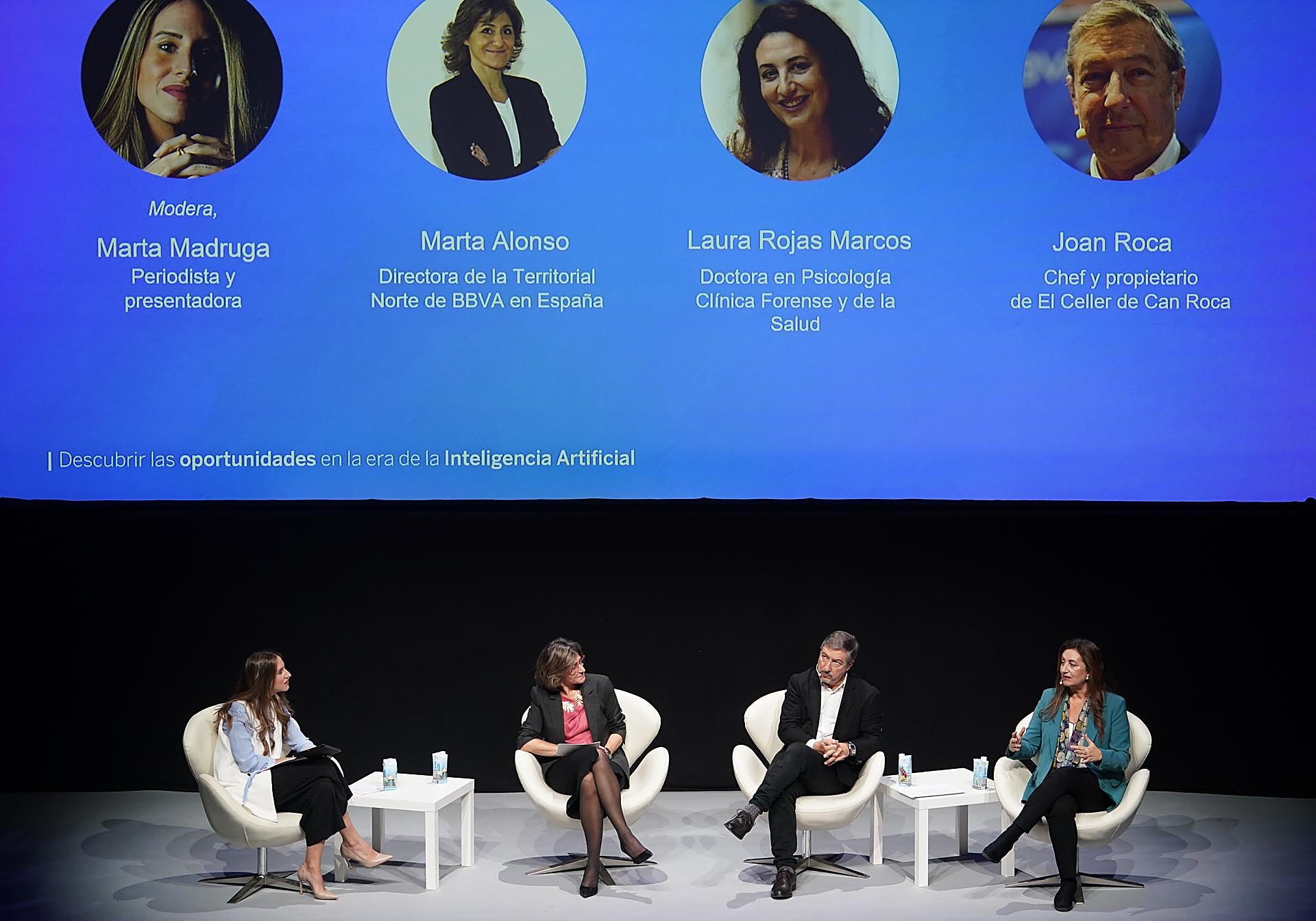 A su alrededor, los otros dos participantes en el debate asintieron. Marta Alonso, directora de la Territorial Norte de BBVA en España, y Joan Roca, chef y propietario del aclamado restaurante catalán El Celler de Can Roca, saben bien cuál es el poder transformador de la IA porque representan dos casos de uso muy diferentes. «Tenemos un gran compromiso con la innovación porque la sociedad quiere vivir experiencias nuevas y el sector de la restauración es muy competitivo y muy demandante de nuevas técnicas y de nuevos conceptos», explicó Roca, que también se muestra optimista en cuanto a la futura colaboración del ser humano con la IA.
