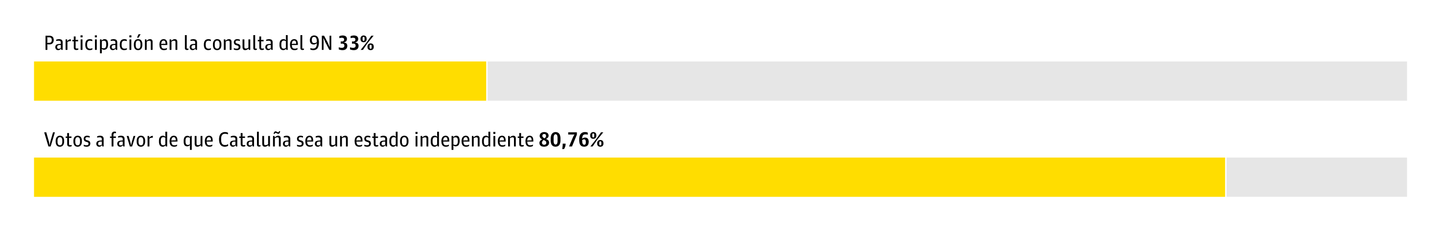9 de noviembre de 2014: Un total de 2,3 millones de catalanes votan en el sucedáneo de consulta en urnas de cartón, en torno al 33% del censo. Al final de la jornada, Mas comparece en rueda de prensa y habla de «éxito total». El ministro de Justicia califica el 9-N de «simulacro inútil y estéril».
