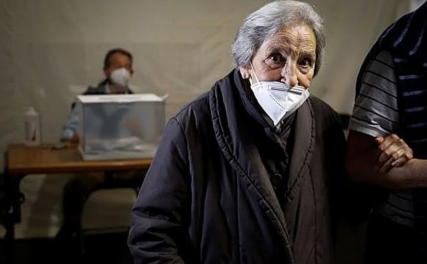Está claro que hoy es un día muy importante para todos los vascos y Custodia, de 86 años, no ha querido perderse la oportunidad de votar en su colegio de Basauri. Ni la lluvia ni la pandemia han impedido que esta señora depositara su papeleta a primera hora de la mañana.