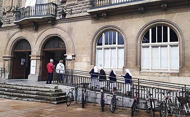 Como es habitual, las monjas han cumplido con el derecho a votar. En el caso de las hermanas de las Siervas de Jesús, lo han hecho en el colegio electoral de la Escuela de Artes y Oficios. Fieles a su costumbre han acudido en grupo, con lo que se ha formado una fila más numerosa que la que había en ese momento. Conscientes de ello, han pedido disculpas y han explicado que ellas siempre acuden juntas. Informa Ander Carazo.