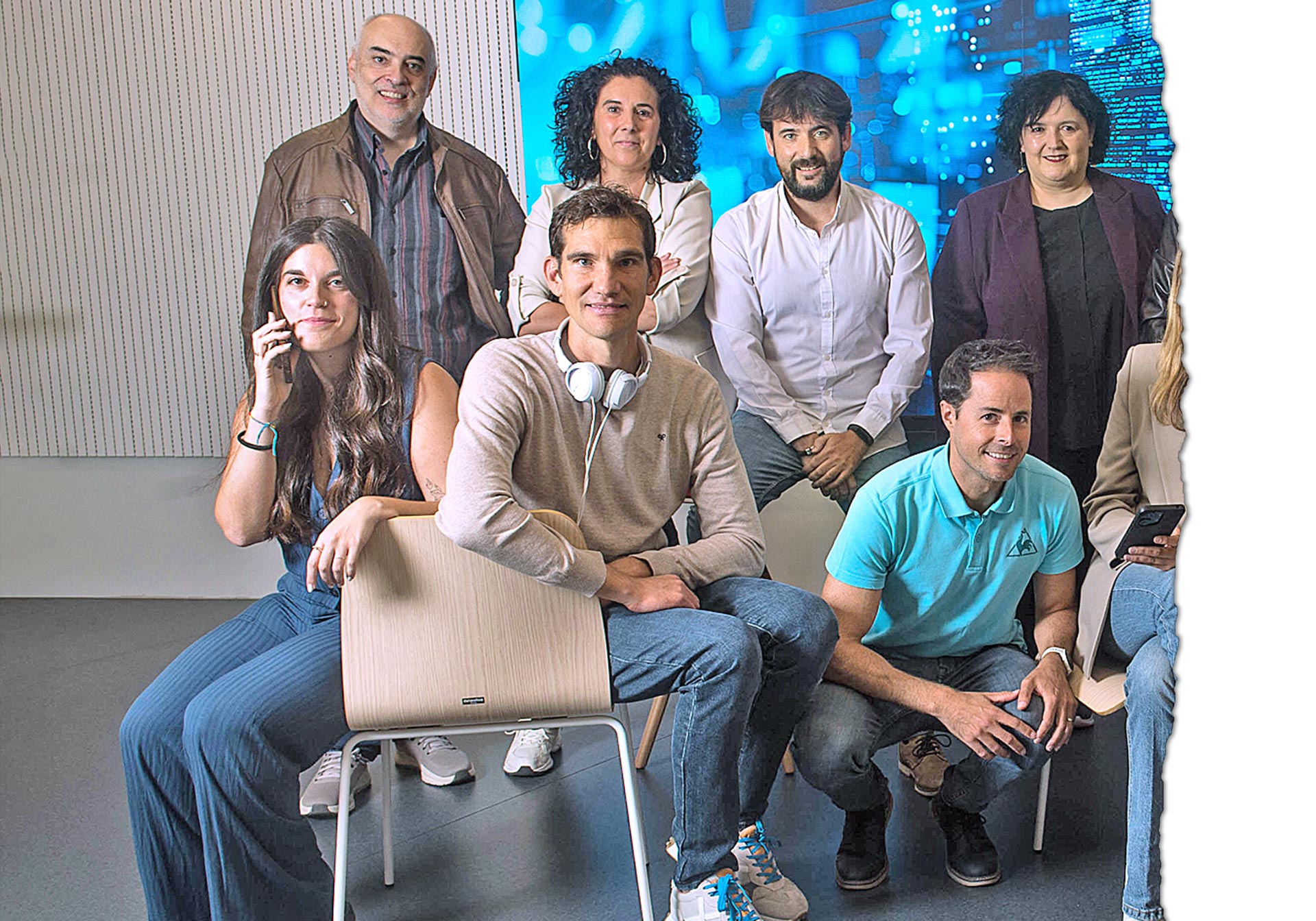 De izquierda a derecha: Dani Santos, Ander Urtiaga, Ignacio Caballero, Aimar Sagarminaga, Iratxe Aborruza, Jose Bóveda y Juan Carlos Martínez. Sentadas: Laura Camiruaga y Andrea Jeréz.
