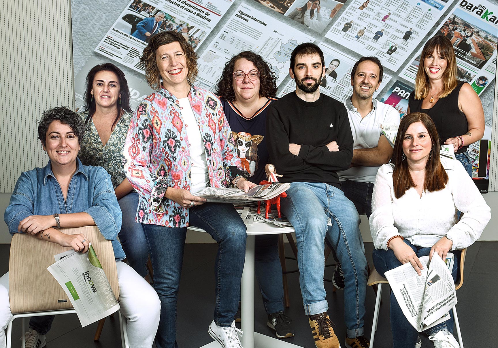De izquierda a derecha: Silvia Osorio, Alberto Tellitu, Leire Moro, Gabriel Cuesta, Hizkuntze Zarandona, Sergio Eguía, Alain Mateos y Lorena Gil.