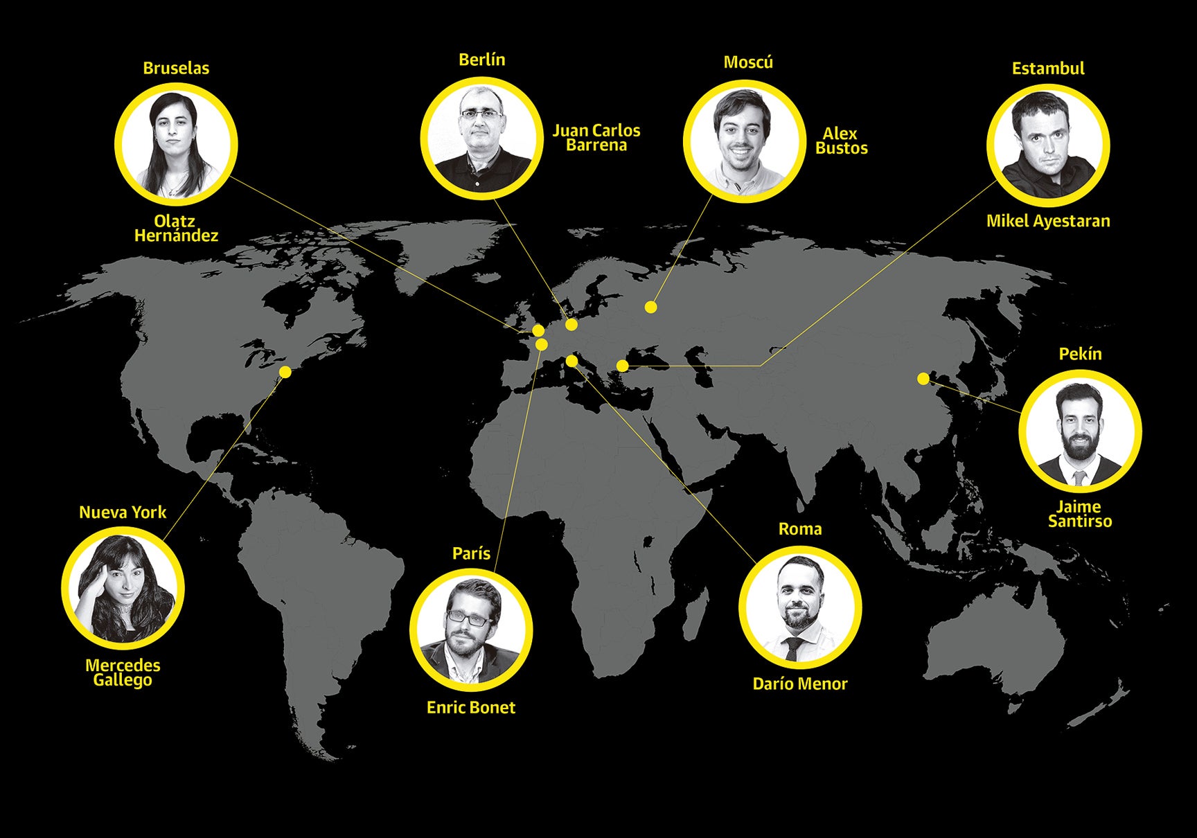 Mercedes Gallego, Enric Bonet, Olatz Hernández, Darío Menor, Juan Carlos Barrena, Álex Bustos, Mikel Ayestaran, Jaime Santirso son los corresponsales internacionales de EL CORREO.