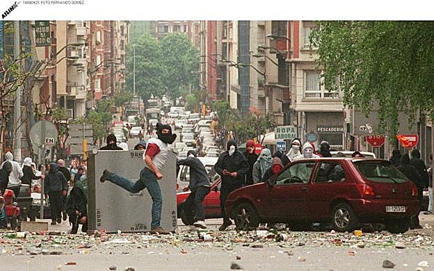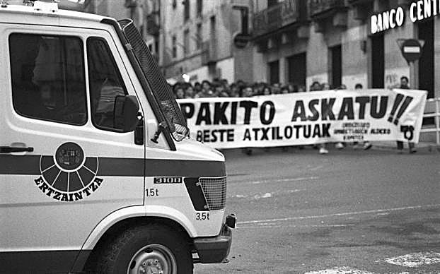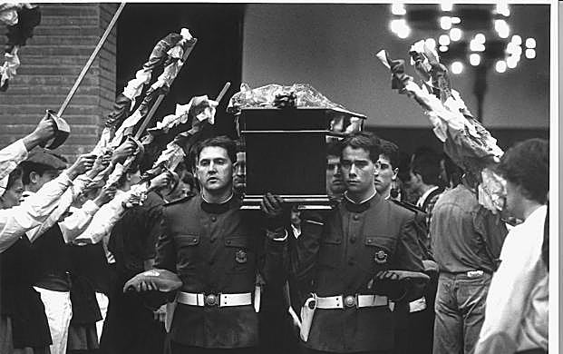 ETA secuestra y posteriormente asesina a sangre fría al concejal del PP en Ermua. La Ertzaintza es la encargada del orden público en todas las manifestaciones posteriores. La multitud les abraza y les piden que se quiten los verduguillos.