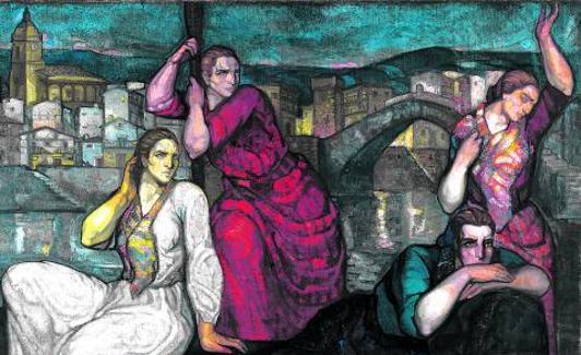 «¿Habéis visto bien el cuadro?», preguntó Inés Uriarte, la primera vasca titulada en bailes de salón. Compagina la faceta de bailarina con su participación en la gestora que dirige Beikozini de Ondarroa, un espacio similar al Kafe Antzokia de Bilbao. Ahora prepara nuevas representaciones de 'Cabaret', un montaje que derrocha creatividad y en su estreno arrasó entre el público ondarrés con más de 1.400 espectadores. Conocedora de la importancia de los detalles en un espectáculo, abrió un debate sobre cuál sería la ambientación más adecuada para reproducir el cuadro. La actriz y coreógrafa Eguzki Zubia, del puerto viejo de Algorta, también era muy consciente del importante papel que estaba a punto de interpretar. «Es muy diferente a todo lo que he hecho hasta ahora», admitió. Como la ocasión lo merecía, no dudó en aportar varias piezas de un vestuario único acorde a la escenografía. «Los he traído por si acaso, pero resultan válidos, ¿verdad?».