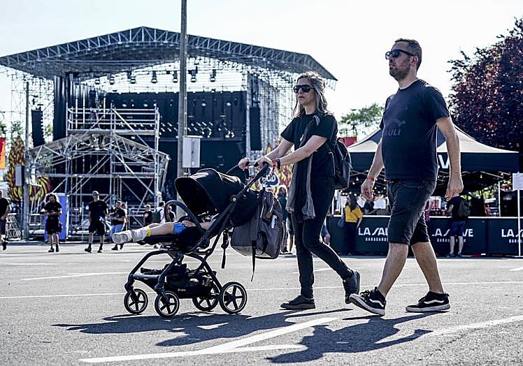 «Fue genial, fue grandioso». Con esa forma tan locuaz y tan italiana se expresa Enzo, padre de Antonio, sobre lo que supuso ver al grupo Rancid por primera vez en directo. Quiere hablar de la banda. De esa explosión punk de los de Berkeley alcanza a seguidores de más de medio mundo. «Son importantes para mí». De hecho, fue el motivo por el que esta pareja italoportuguesa viajó desde Canas de Senhorim (Portogallo) en caravana para acudir a la primera jornada en Mendizabala. «Seis horas en coche». El acompañante, su 'bambino' de 2 años. El pequeño llamó la atención de muchos asistentes al festival en la primera jornada por su capacidad para dormirse en su carrito ajeno al bullicio a media tarde. En este caso, los padres disfrutaron tanto o más que el pequeño. Para ellos, el festival ha sido una parada en una ruta que pasará también por Bilbao. «Aprovechamos para hacer turismo antes de el viaje de vuelta».