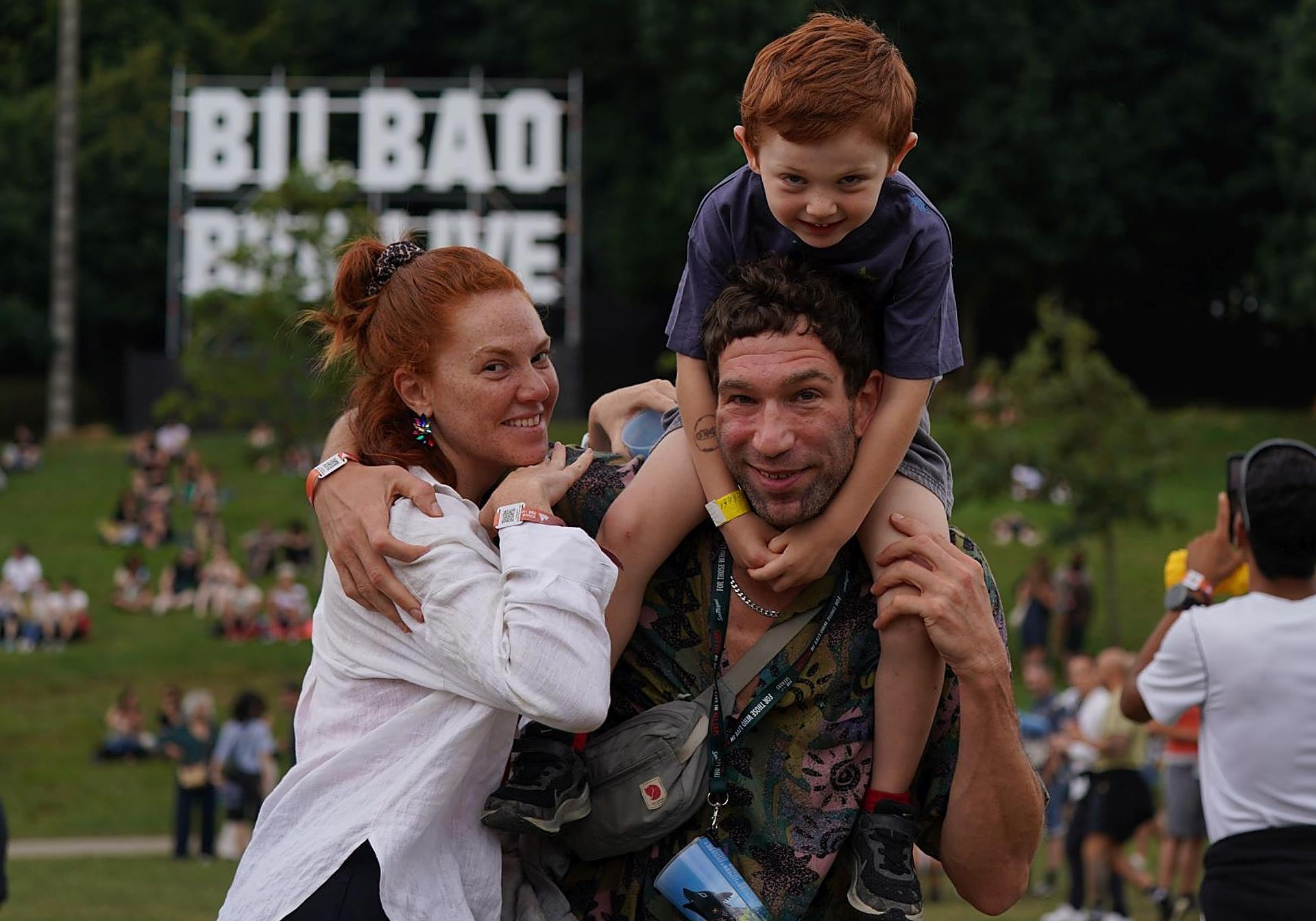 Los preciosos ojos azules de Benji están siendo testigo de su primer festival. «Me están encantando los juegos», cuenta tímidamente al oído de su padre mientras señala una piscina de bolas situada unos metros más allá. Aunque parece que le ha comido la lengua un gato, habla un perfecto castellano porque lleva más de media vida viviendo en Barcelona. Emigraron desde Tel Aviv hace cuatro años. «Hemos estado de vacaciones en Francia, después hemos ido a San Sebastián y hemos querido rematar el tour en el Bilbao BBK Live», explica Zaf, el padre de familia. Él y su mujer ya estuvieron en Kobetamendi viendo a The Killers en 2022. «Sin el niño, la experiencia fue totalmente diferente», rememora entre risas. Esta vez, su momento estrella ha sido el bolo de Pulp. «Llevábamos mucho tiempo esperando para verlos y poder disfrutarlos en familia ha sido lo más. Ya estamos pensando en volver el próximo verano».