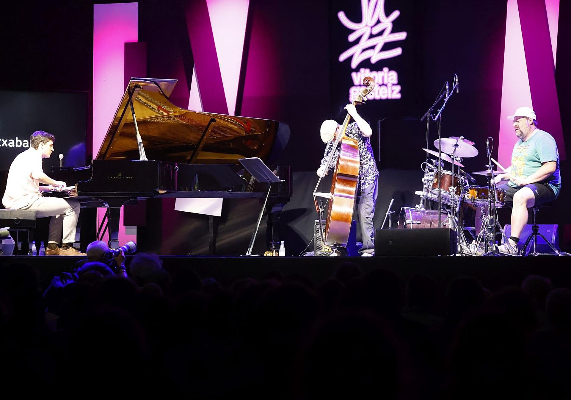 El concierto de ayer en el auditorio María de Maeztu del Palacio Europa tenía ese aura de las propuestas interesantes, esas que aseguran al espectador del Festival de Jazz de Vitoria la sensación de estar ante alguien que en unos años será imprescindible. De pianistas nacionales que han deslumbrado en el certamen se pueden contar unos cuantos a lo largo de los años: desde Tete Montoliu y Chano Domínguez, pasando por Moisés Sánchez, Mezquida o Clara Peya –con una propuesta más pop y la electrónica–. El auditorio coronó a Torres, acompañado del japonés Masa Kamaguchi al contrabajo y el danés Kresten Osgood a la batería, escuderos habituales en sus giras europeas.