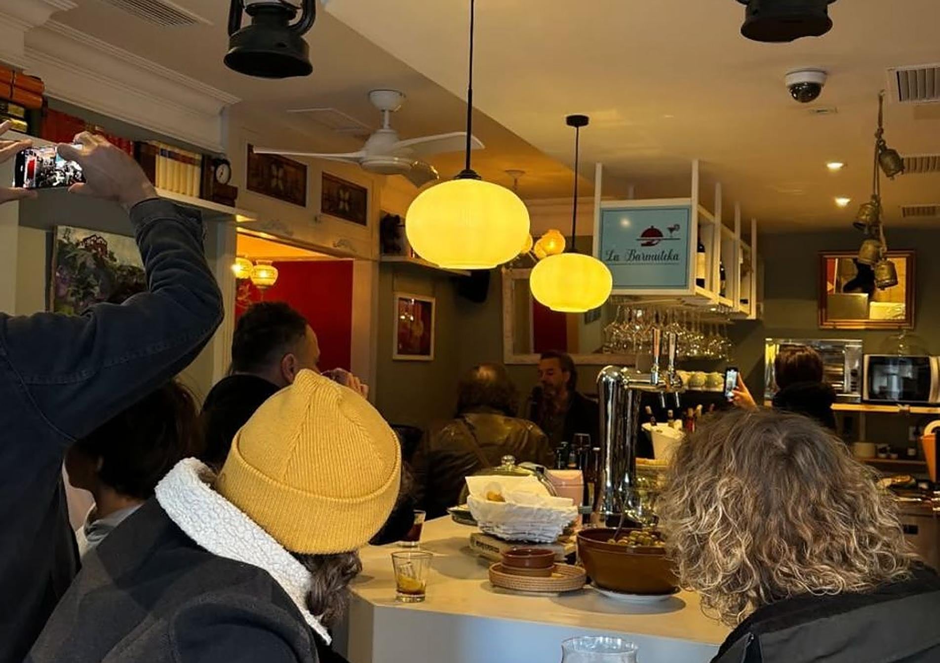 Para poner la guinda a una mañana perfecta, la pareja se acercó a uno de los templos del vermú en Algorta, La Barmuteka. Productos artesanales rodeados de un ambiente que te hace sentir como en casa, con lámparas y libros. Le da un toque acogedor y de biblioteca. Allí disfrutaron de un pequeño concierto del artista Iñigo Coppel.