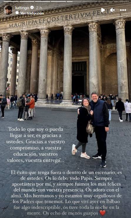 El sevillano ha querido compartir con sus seguidores el cariño que siente por sus padres y ha asegurado que «lo que viví ayer en Bilbao fue algo indescriptible, os tuve toda la noche en la mente». Y termina diciendo que les echa de menos junto a una fotografía de sus padres.