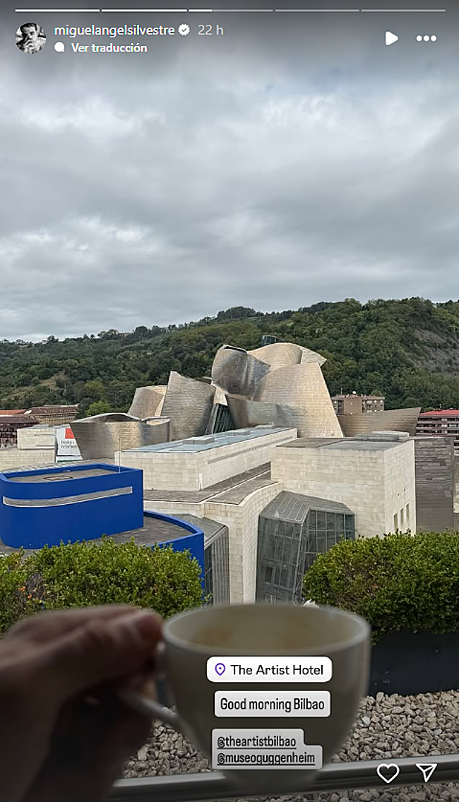 En varias historias compartidas en su perfil de Instagram, el que fuera protagonista de 'Sin tetas no hay paraíso', ha mostrado su habitación con vistas al Museo Guggenheim y ha desayunado en la azotea del hotel. Silvestre no ha dado detalles sobre el motivo de su nueva visita a tierras vascas, pero por las imágenes mostradas ha podido conocer una de las azoteas más 'cool' de la ciudad en la actualidad.