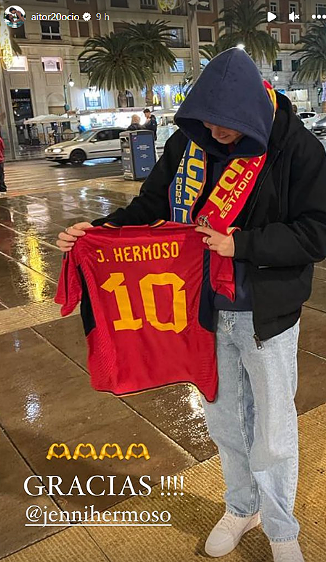 Su aita se la llevó a Málaga para presenciar en directo el encuentro que las chicas de Montse Tomé disputaron ante Suecia y que remontaron en la segunda parte con un marcador final de 5-3. Además de disfrutar de un partido épico, de esos que uno siempre quiere vivir, la joven tuvo una sorpresa muy especial. Su padre logró que conociera a Jenni Hermoso y durante ese encuentro, que tuvo lugar al término del partido, la internacional y actual delantera del Pachuca de México le obsequió con una camiseta firmada.