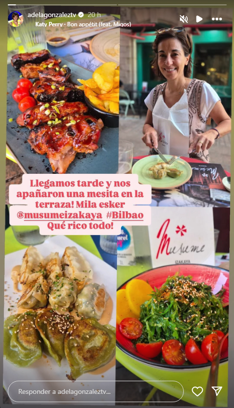 Sin embargo, entre pote y pote, llegó la hora de comer y se les hizo «tarde», tal y como ha contado en una historia publicada en su perfil de Instagram. Fue entonces cuando Adela se decantó por el Musume Izakaya, un restaurante japonés que lleva asentado en el corazón del Casco Viejo desde hace varios años y que ofrece un recetario asiático con guiños a la cocina vasca.
