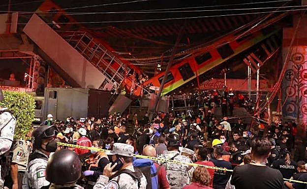 El accidente tuvo lugar en la noche de este lunes al desplomarse el tren, al parecer, por el derrumbe de una viga entre las estaciones Olivos y Tezonco de Ciudad de México, dejando además de más de una veintena de víctimas mortales, cerca de 80 heridos.