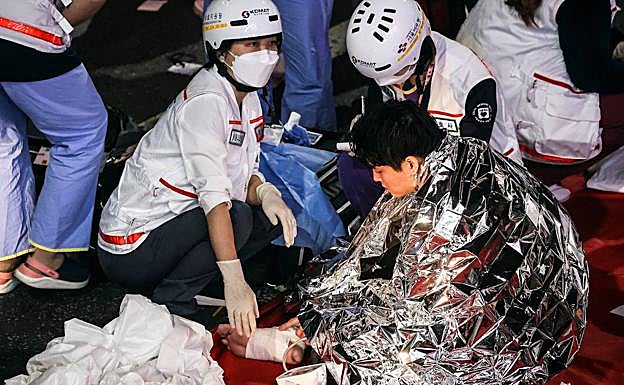 La fiesta de la muerte acabó siendo la muerte de la fiesta. A Corea del Sur le esperaba este domingo el amanecer más trágico tras revelar la luz del día las magnitudes catastróficas de la estampida que tuvo lugar el sábado por la noche en Itaewon, una de las zonas de bares más populares de Seúl. A las nueve de la mañana, la cifra oficial de víctimas ascendía a 151 fallecidos, de los que 19 son extranjeros, y 82 heridos, la mayoría jóvenes de unos 20 años que estaban celebrando la fiesta de Halloween. Pero las autoridades temen que el número aumente porque la Policía ha recibido 350 denuncias de desapariciones y los padres de los chavales que acudieron anoche a Itaewon los buscan desesperados por los hospitales. De los fallecidos, 97 son mujeres y 54 son hombres y entre ellos hay, además de surcoreanos, jóvenes de China, Noruega, Irán y Uzbekistán.
