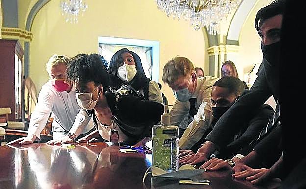 Sin embargo, su arenga a los simpatizantes antes del asalto al Congreso ha hecho saltar las alarmas y el hartazgo. Trump afirmó este jueves que facilitará una «transición política», pero a su alrededor crece la idea de que es necesario controlarle para evitar futuros disparates como el que el miércoles provocó un estupor mundial. A las peticiones de un centenar de representantes demócratas para que sea expulsado del Despacho Oval invocando la vigesimoquinta enmienda de la Constitución o un proceso de 'impeachment' -ya hubo un intento a principios del año pasado y fracasó-, se unieron ayer las de algunos líderes republicanos, que reconocen estudiar la posibilidad de suspender a su compañero de filas mediante el artículo constitucional que autorizaría su destitución.
