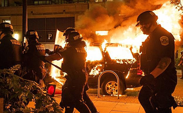 Toda Minneapolis está desierta. El eco de las sirenas policiales estremece las calles, salpicadas de reyertas. No hay ni farmacias o tiendas de alimentación abiertas. Los hoteles han apuntalado las cristaleras con maderas y les han quitado los tiradores a las puertas. Sobre esos tablones han pintado los manifestantes sus clamores de «Justicia para George Lloyd», que hoy les representa a todos. «La vida de los negros no vale una mierda en ese país», lapida Haynes con rabia. «No es que no nos gusten los blancos, es que no confiamos en ellos».
