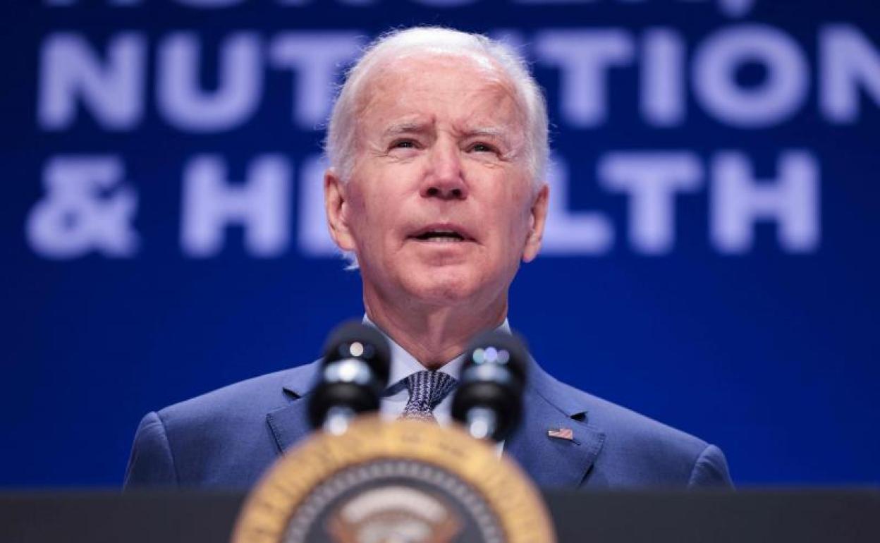 El presidente estadounidense, Joe Biden, durante una conferencia en la Casa Blanca sobre la inseguridad alimentaria. AFP