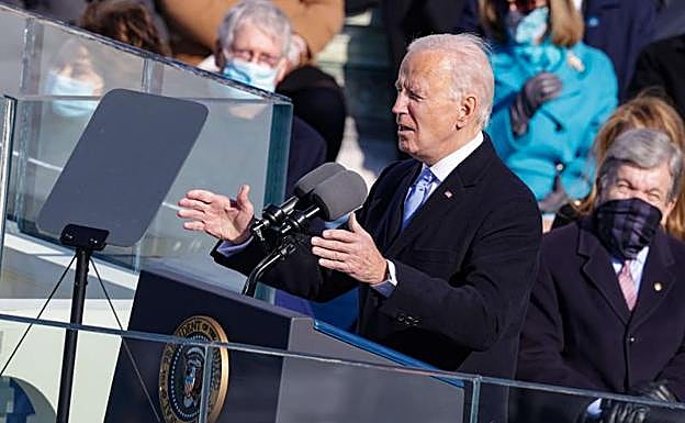 Kamala Harris choca puños con Joe Biden tras ser investida como vicepresidenta del país. Jonathan Ernst / reuters