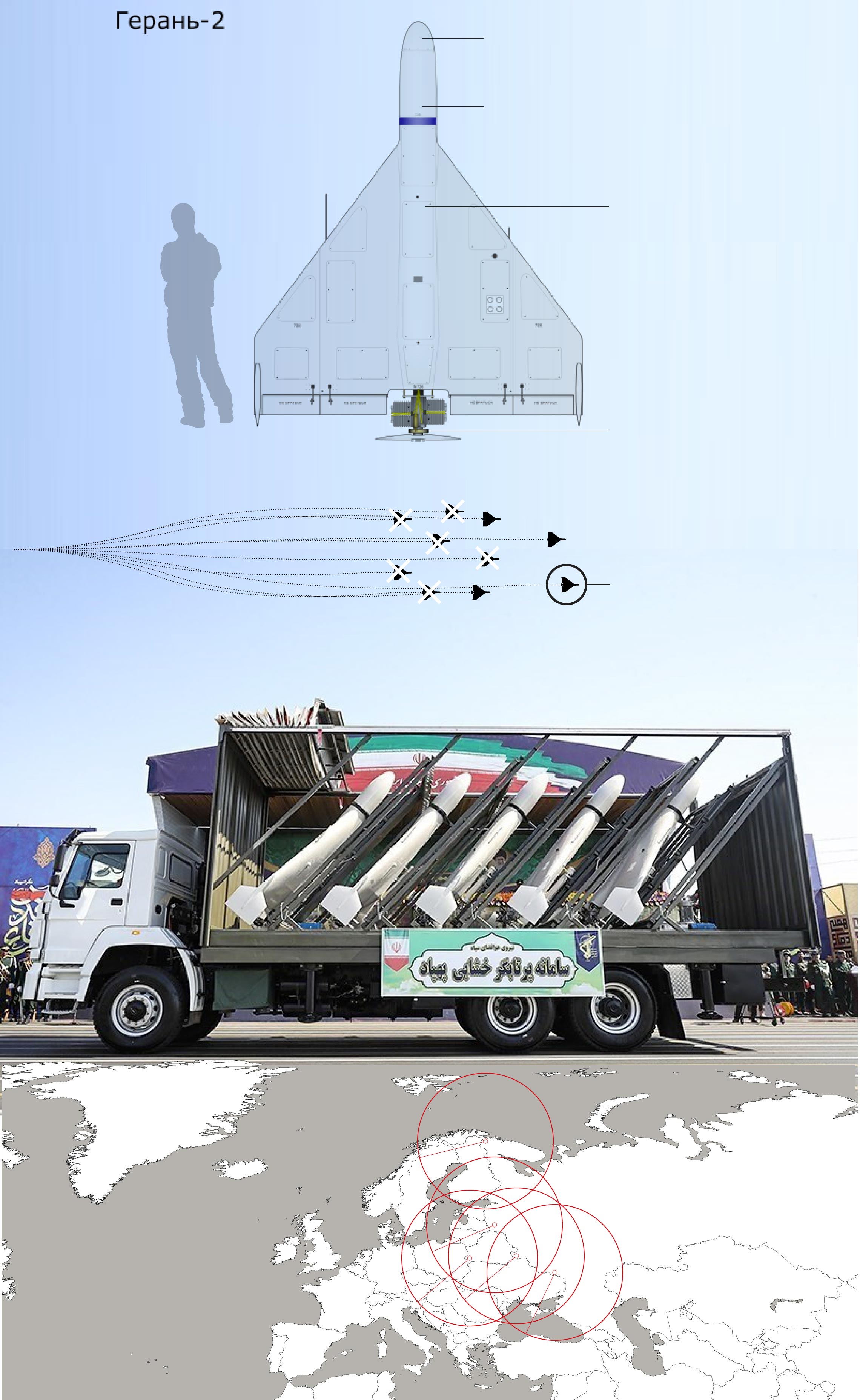 Los drones aparentemente fueron Geran-2 (denominación rusa del iraní Shahed-136). Los militares habían recuperado anoche los restos de más de una docena. No hubo víctimas y los daños resultaron escasos al caer en campo abierto. Solo se registraron destrozos en el tejado de una casa.