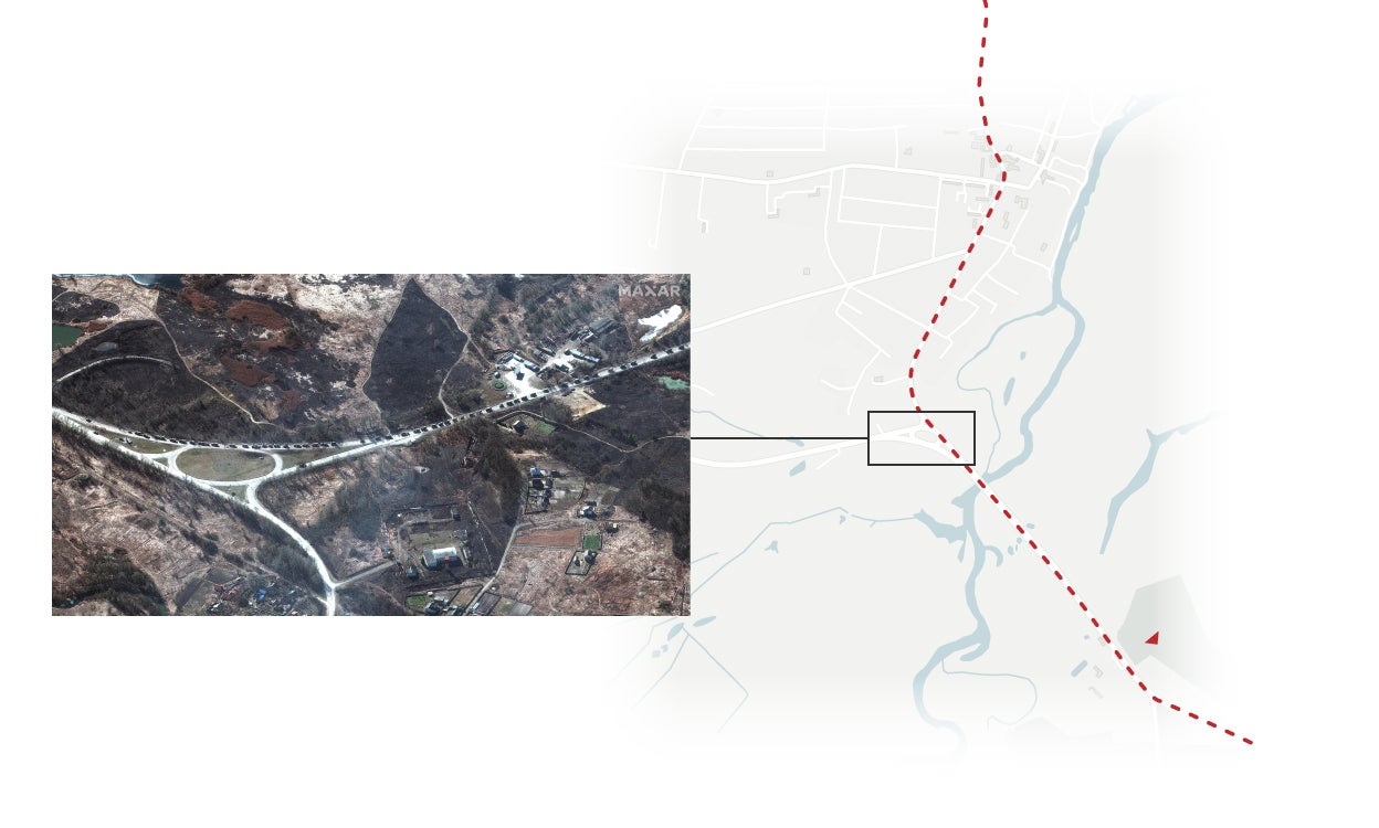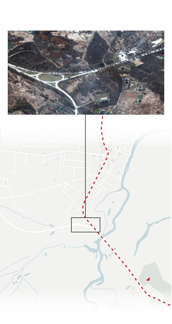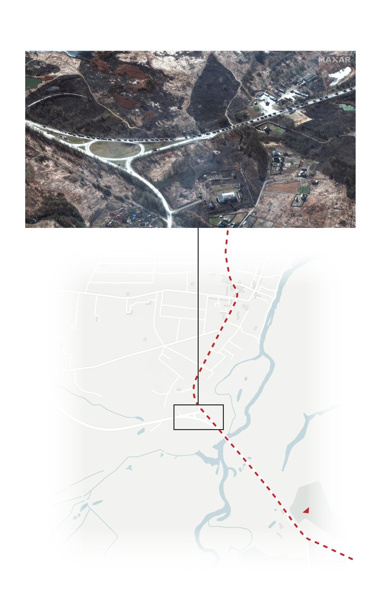 El convoy fue avistado y fotografiado el día 28 atravesando la localidad de Ivankiv, a unos 60 kilómetros de Kiev. Podría intentar entrar en la capital por el norte o rodearla e intentar un ataque desde el oeste.