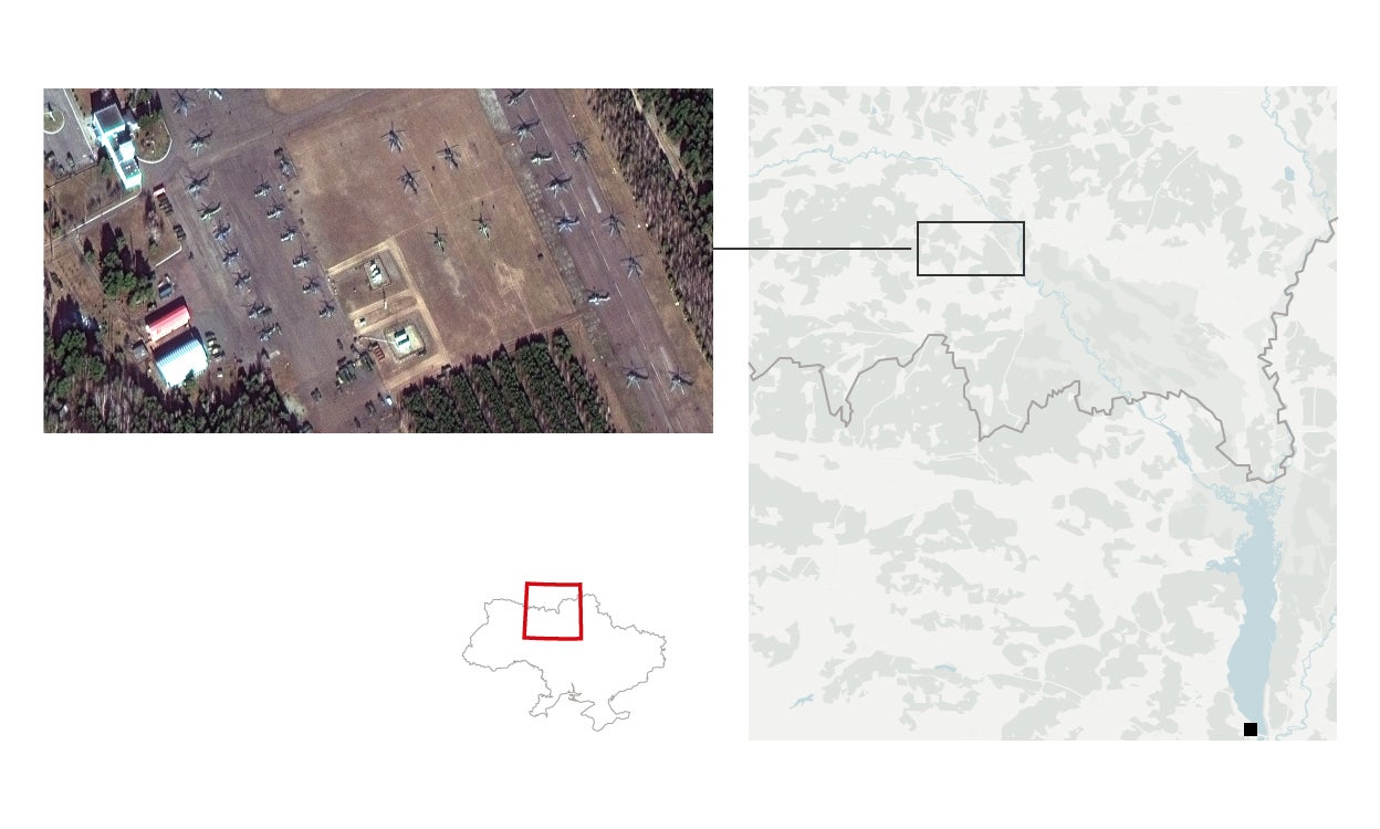 Bielorrusia juega también un papel importante. Diversas imágenes por satélite muestran helicopteros rusos que se agrupan al otro lado de la frontera ucraniana.