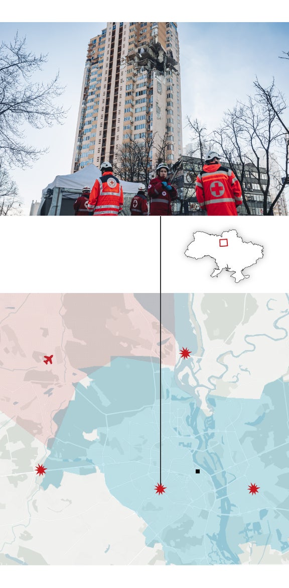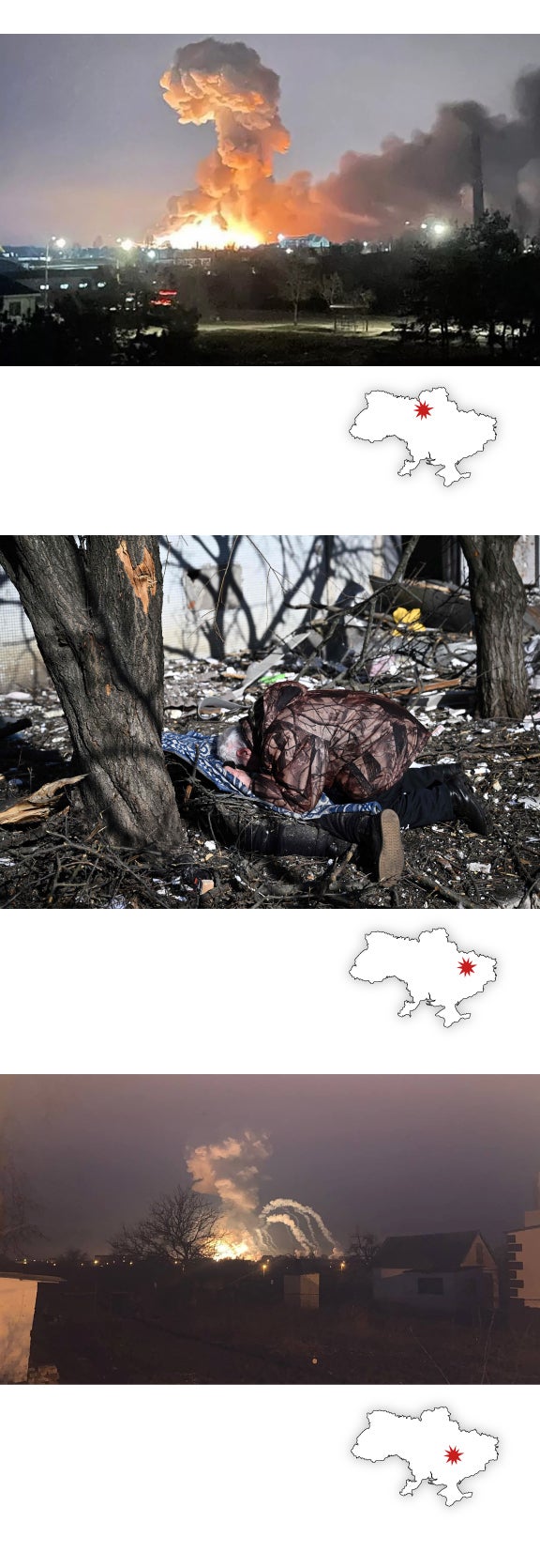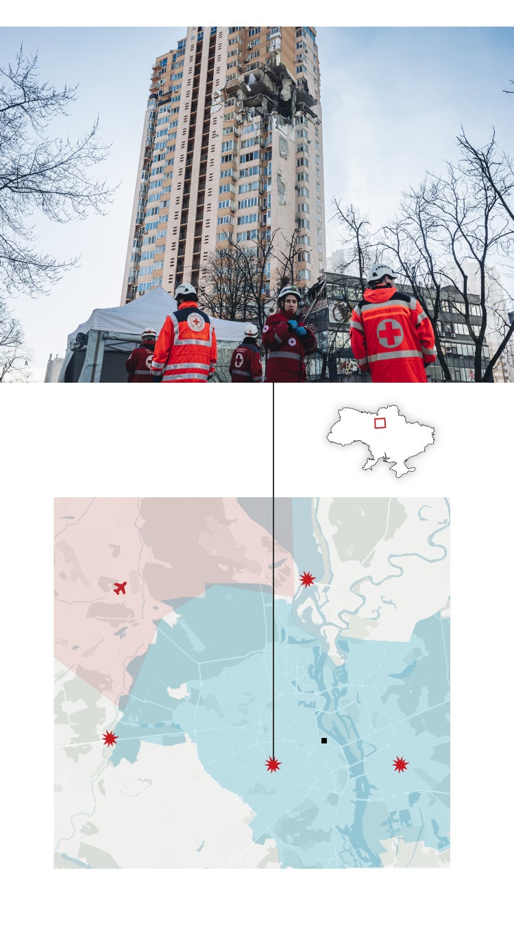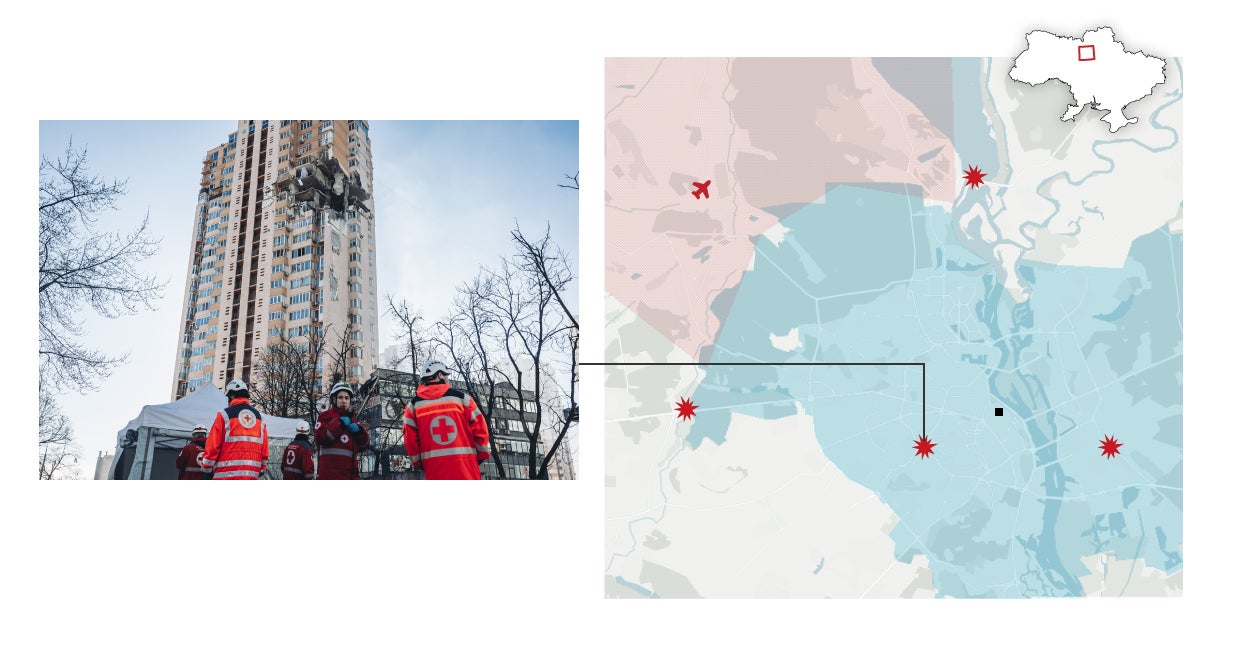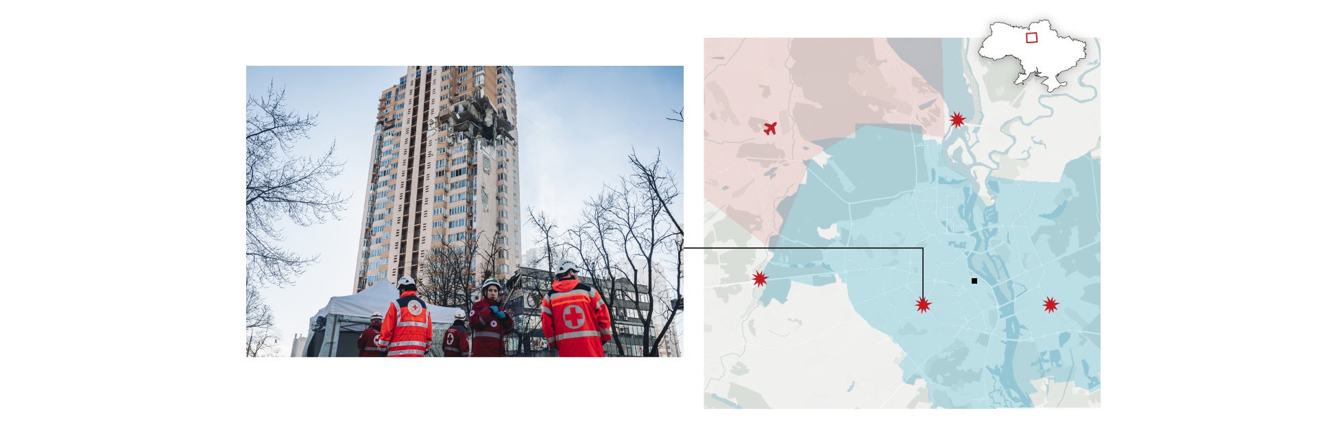 En la madrugada del 26 de febrero un misil impacta en un edificio de viviendas al noroeste de Kiev. La guerra se libra ya en los alrededores de la capital, donde las fuerzas ucranianas, entre ellos ciudadanos que se han sumado al frente, resisten el asedio de los rusos, incapaces por el momento de rodear la ciudad.