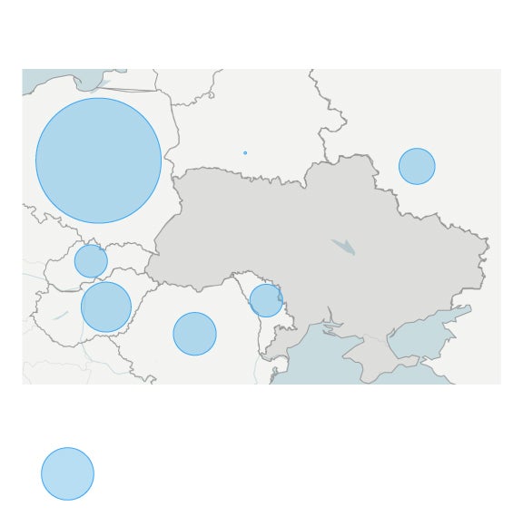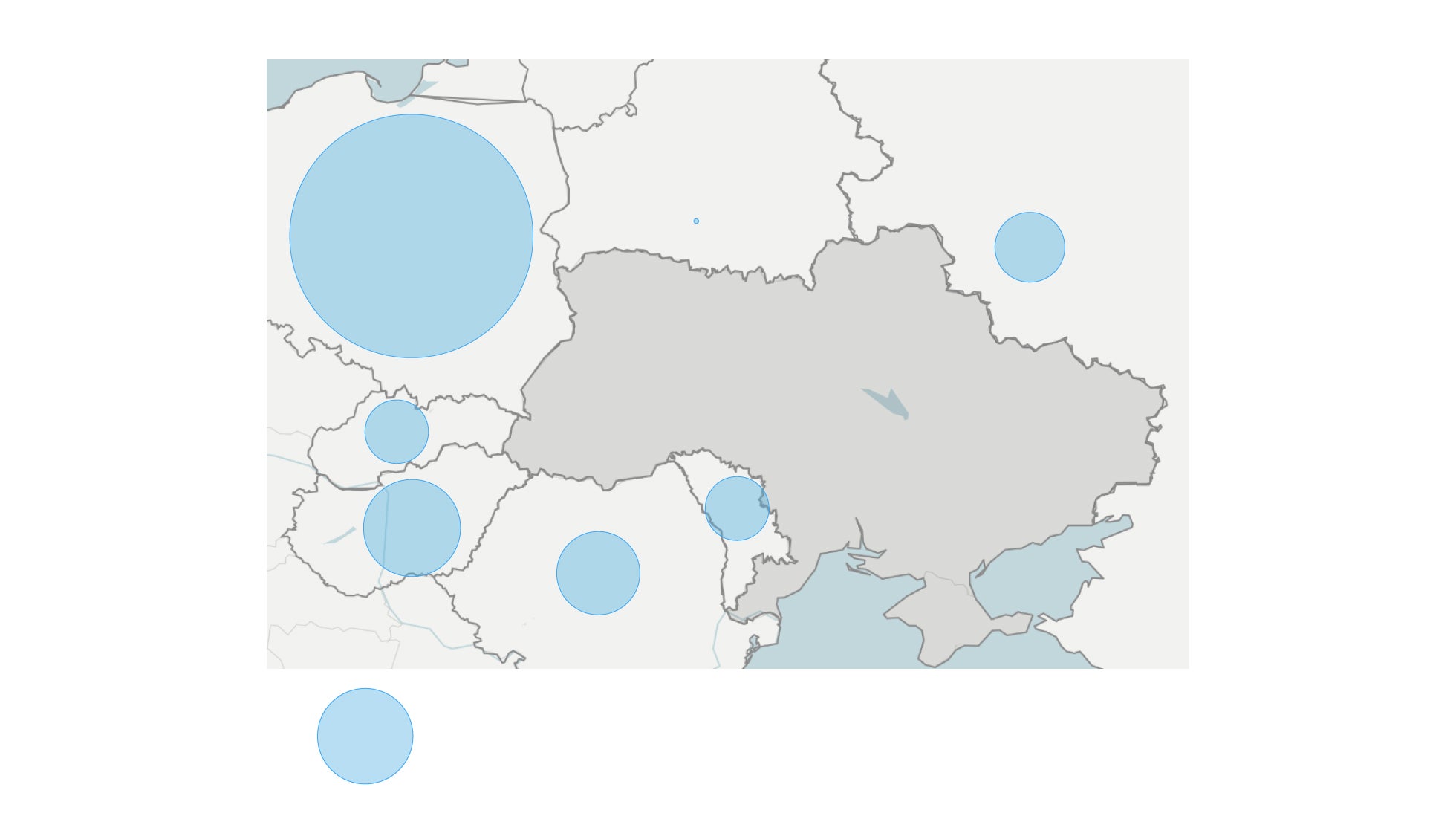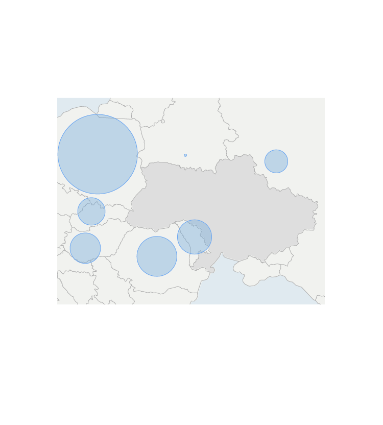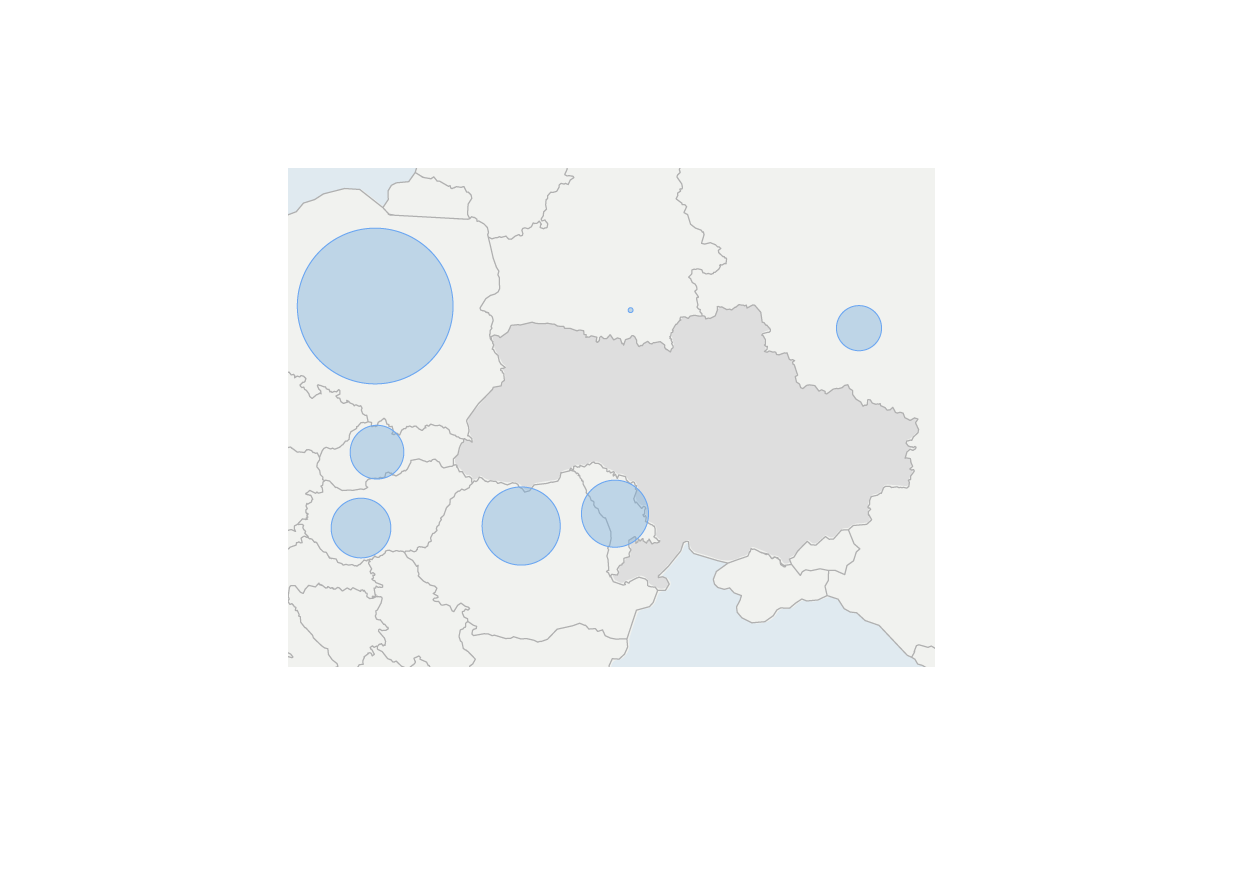 Los datos acumulados en esta tabla son más altos que el número total de refugiados que huyen de Ucrania presentado anteriormente, ya que también tiene en cuenta a las personas que cruzan la frontera entre Rumania y Moldavia.