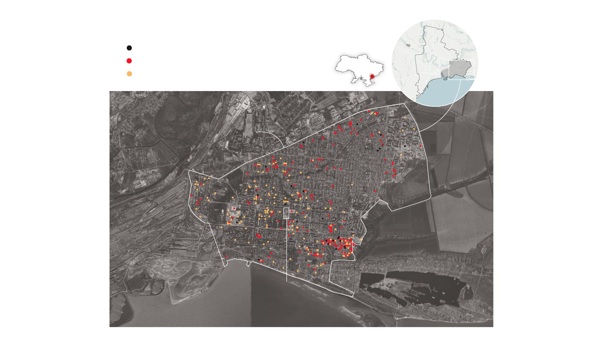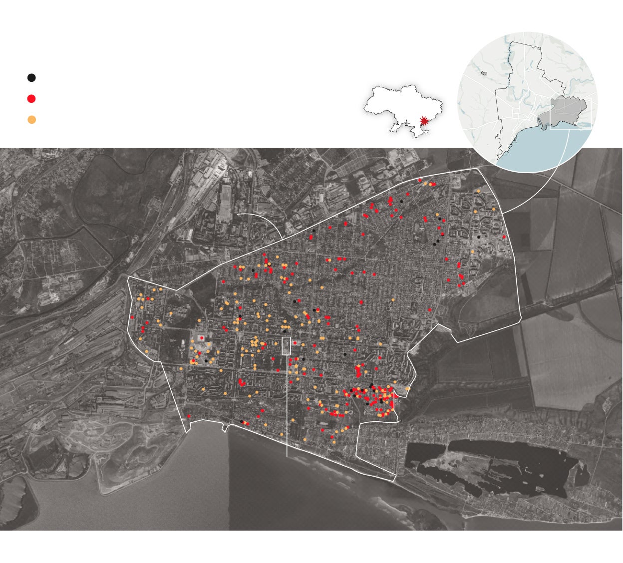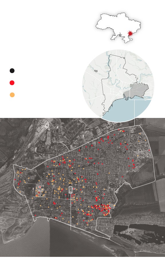 Daños en edificios en el distrito Livoberezhnyi de Mariúpol