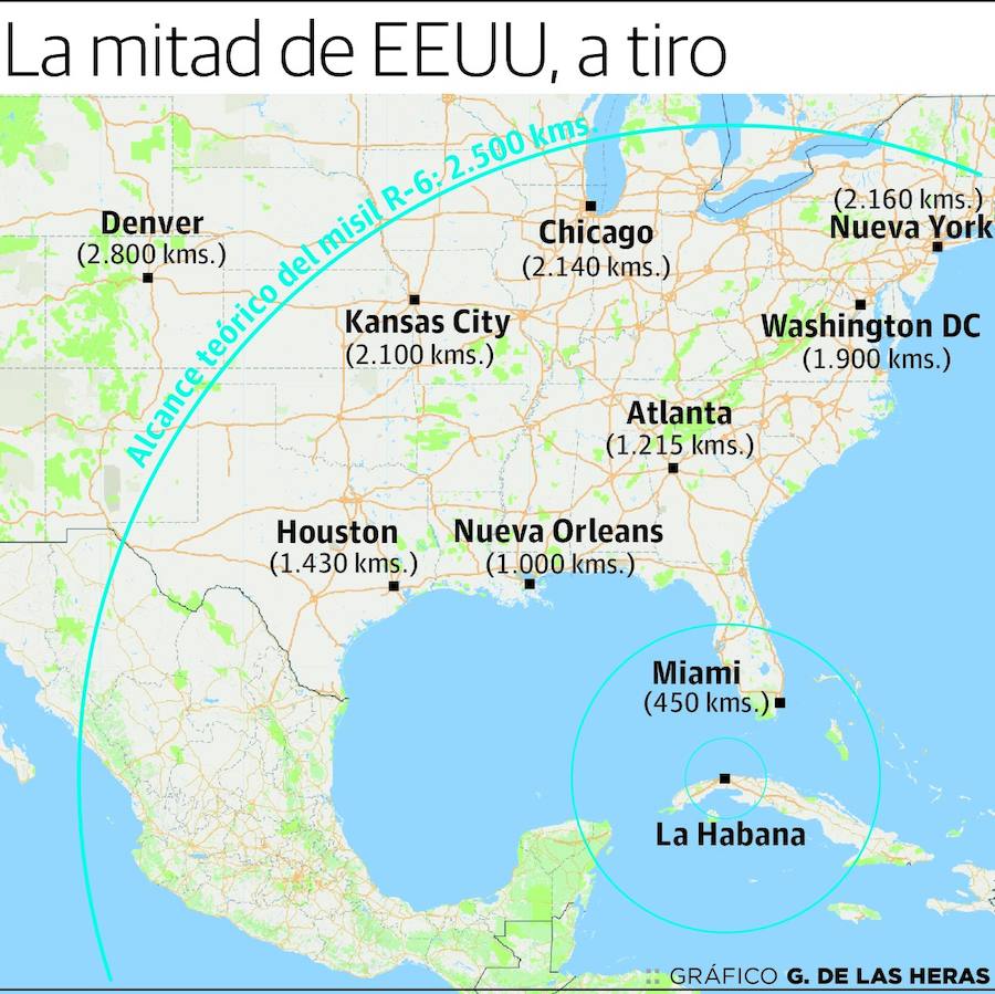 Dios creó el mundo en seis días y la tensión política estuvo cerca de acabar con él en las dos semanas más inciertas vividas durante la Guerra Fría. Hace 55 años, del 14 al 28 de octubre de 1962, la Humanidad se encontró al borde de la guerra nuclear, a un paso del abismo. Fue una peligrosa partida a tres bandas entre John F. Kennedy, Nikita Kruschov y Fidel Castro en quince jornadas que pusieron a prueba la capacidad estratégica y diplomática de los dos bloques que dividieron el mundo tras la Segunda Guerra Mundial. La olla estuvo a punto de reventar cuando el Pentágono descubrió cohetes soviéticos con cabezas nucleares apuntando desde Cuba a su territorio. Por fortuna para el planeta Tierra, el acuerdo firmado por Estados Unidos y la Unión Soviética para desmontar los amenazantes misiles bajó la temperatura muchos grados desde el punto de ebullición. Ese pacto se selló en el último momento y a espaldas del líder cubano. Cinco decenios y medio después la historia se repite, trasladada a Corea del Norte, donde el régimen de Kim Jong-un amenaza con «hundir» Japón y reducir Estados Unidos a «cenizas y oscuridad». Al tiempo, Cuba sigue tan bloqueada como entonces. Donald Trump no ha roto aún los frágiles lazos diplomáticos entre Washington y La Habana, pero sí los ha introducido en el congelador.