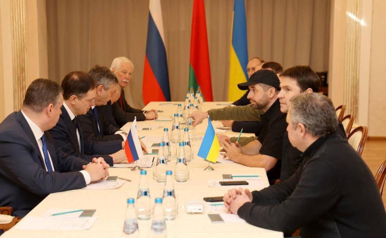 Una imagen de la primera reunión entre las delegaciones rusa y ucraniana sobre un alto el fuego. belta/Vídeo: ATLAS