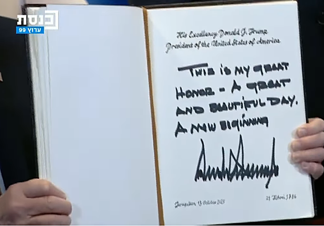 Donald Trump se encuentra ya en Parlamento hebreo (Knéset) después de haber aterrizado en el aeropuerto de Ben Gurion. El máximo dirigente de EE UU ... se ha reunido con el primer ministro israelí, Benjamín Netanyahu, y con su homólogo hebreo, Isaac Herzog, quien ha asegurado que «el legado del presidente Trump será recordado durante generaciones por el Estado de Israel y el pueblo judío».
